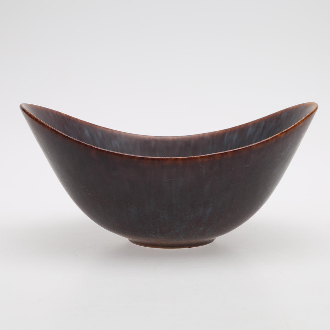 Bowl with glaze in brown and blue tones.