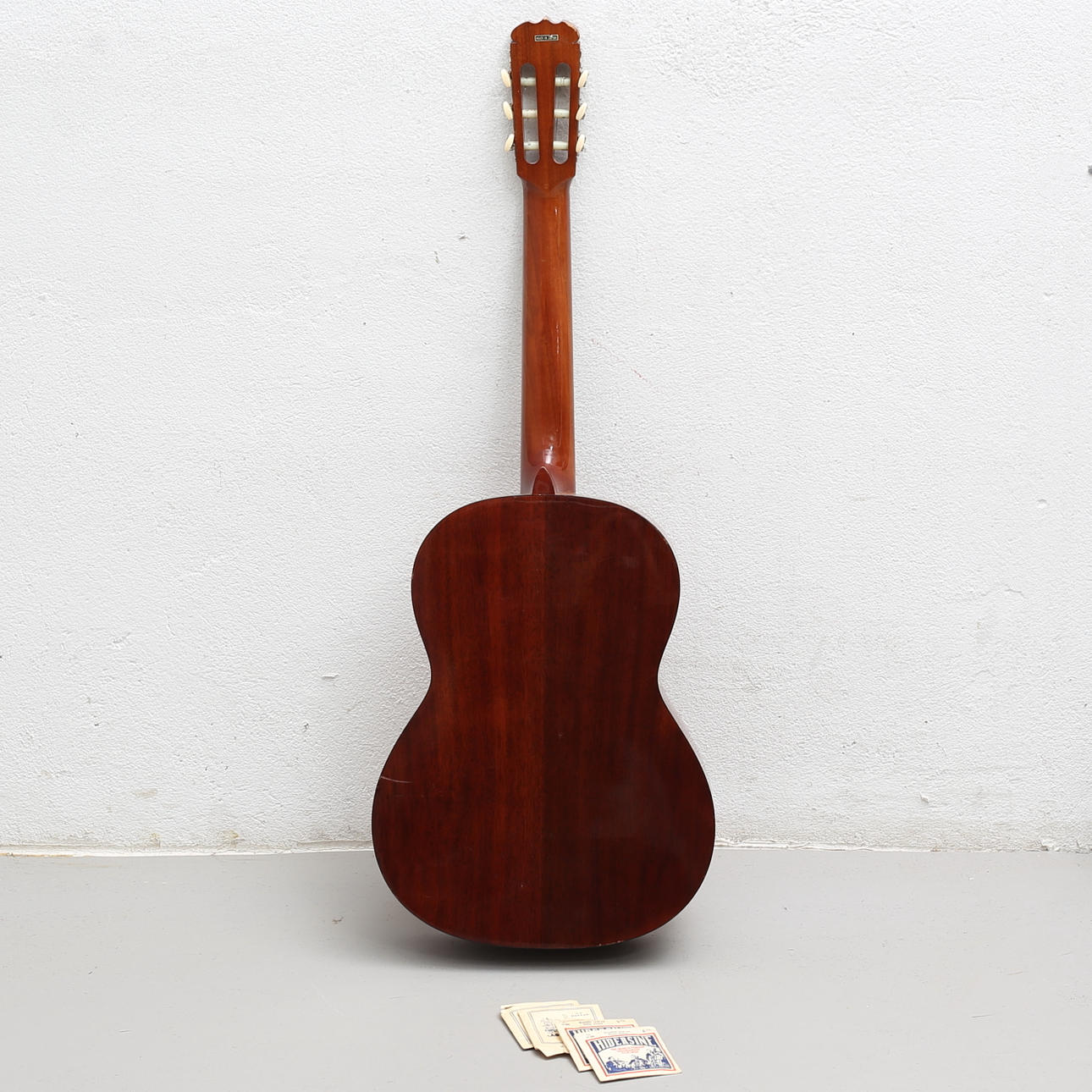 Scratches, marks. Two strings are missing.