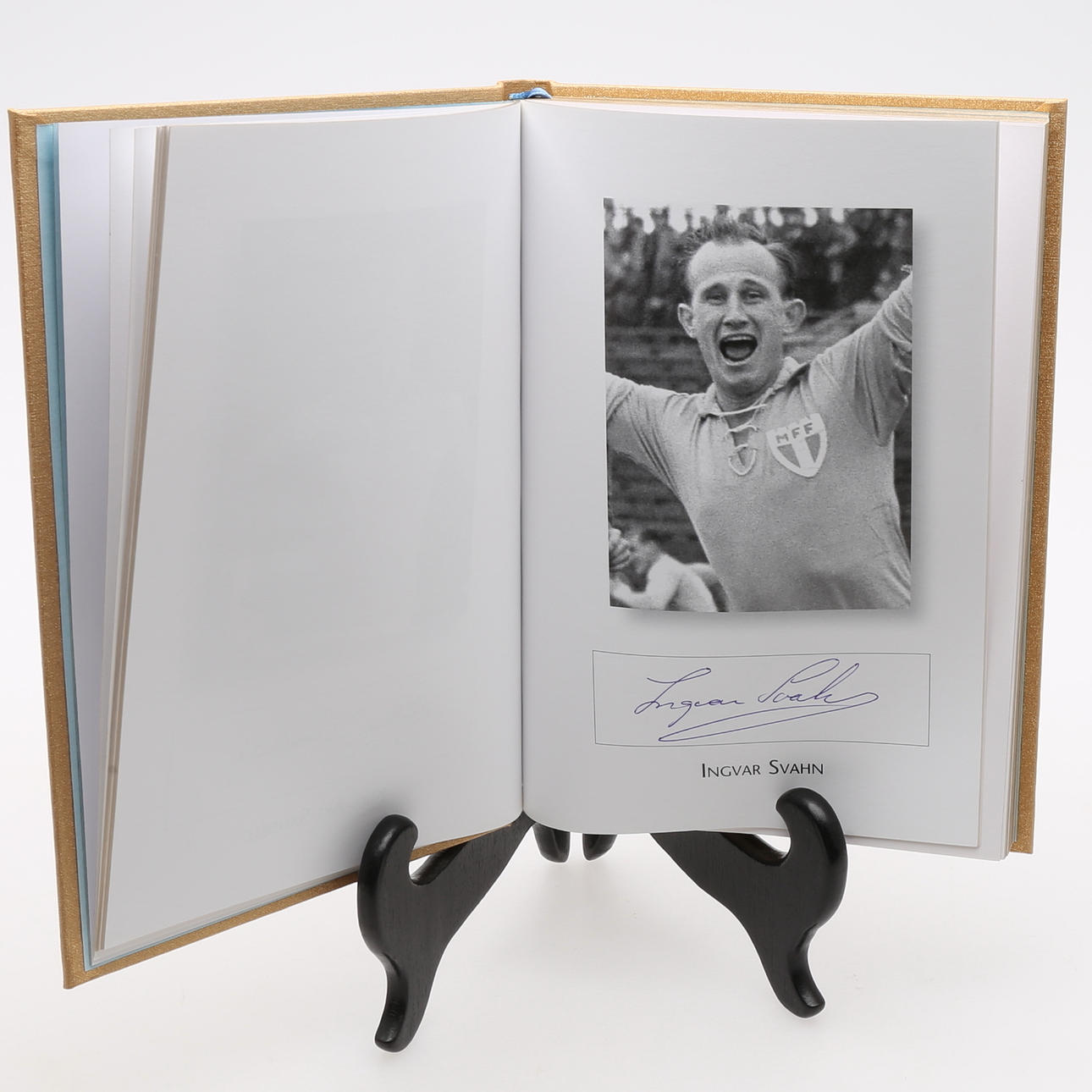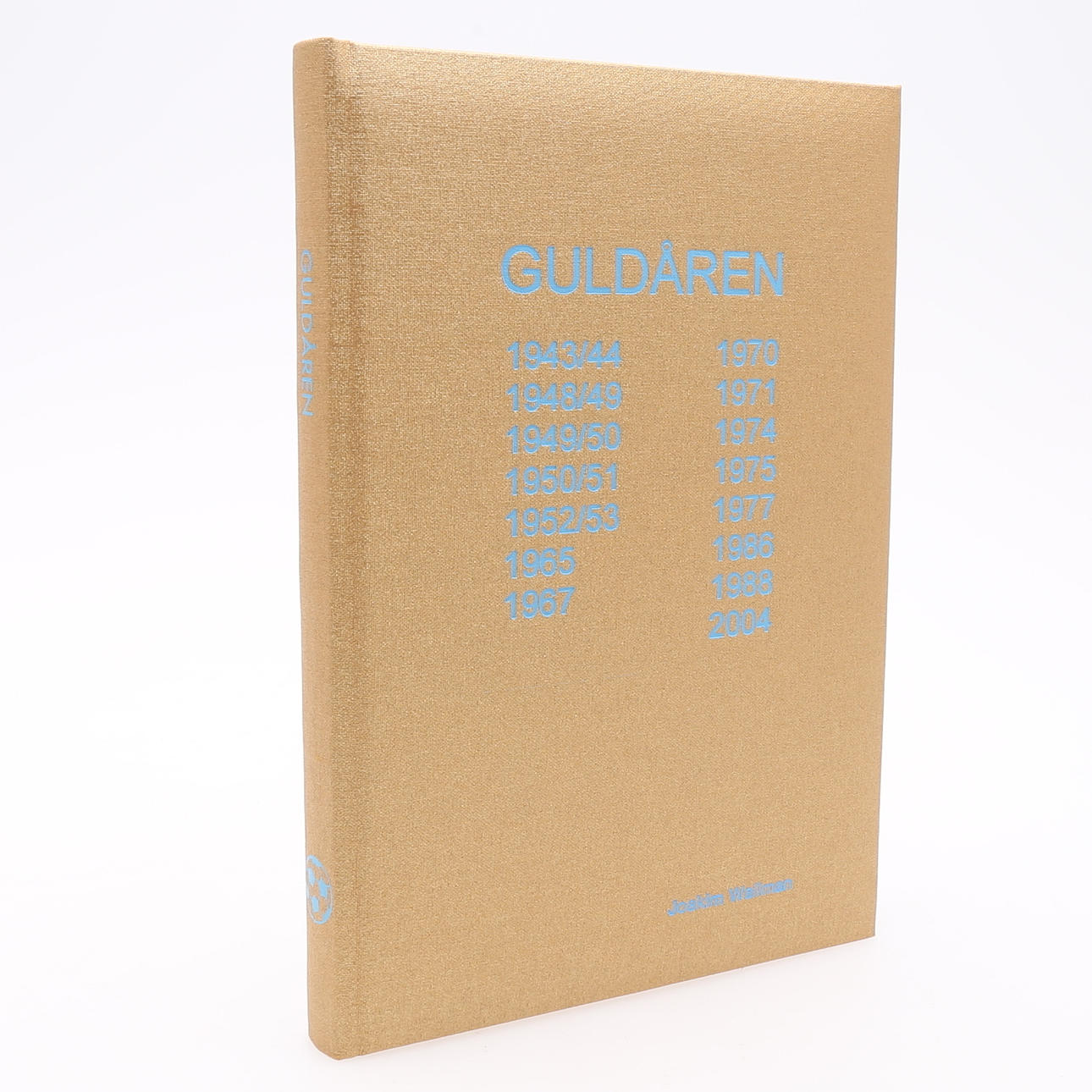 Ambrius, Jonny. The golden years - from Eric to Hasse. About MFF's gold in the Allsvenskan from 1943/44 to 2004. Sportförlaget in Europe, 2009. Signed by 15 legendary players. 8vo in a gilt leatherette binding with blue text on front cover and cassette with MFF image. Purely golden section. Richly illustrated. 215 p. Signed at the beginning by 15 players under pictures of themselves. Roy Andersson, Patrik Andersson, Martin Dahlin, Ingemar Andersson, Krister Kristensson, Bo Larsson, Hasse Mattisson, Jan Möller, Erik Nilsson, Calle Palmér, Kjell Rosén, Nils-Åke Sandell, Ingvar Svahn, Tore Svensson, Staffan Tapper and Jonas Thern.