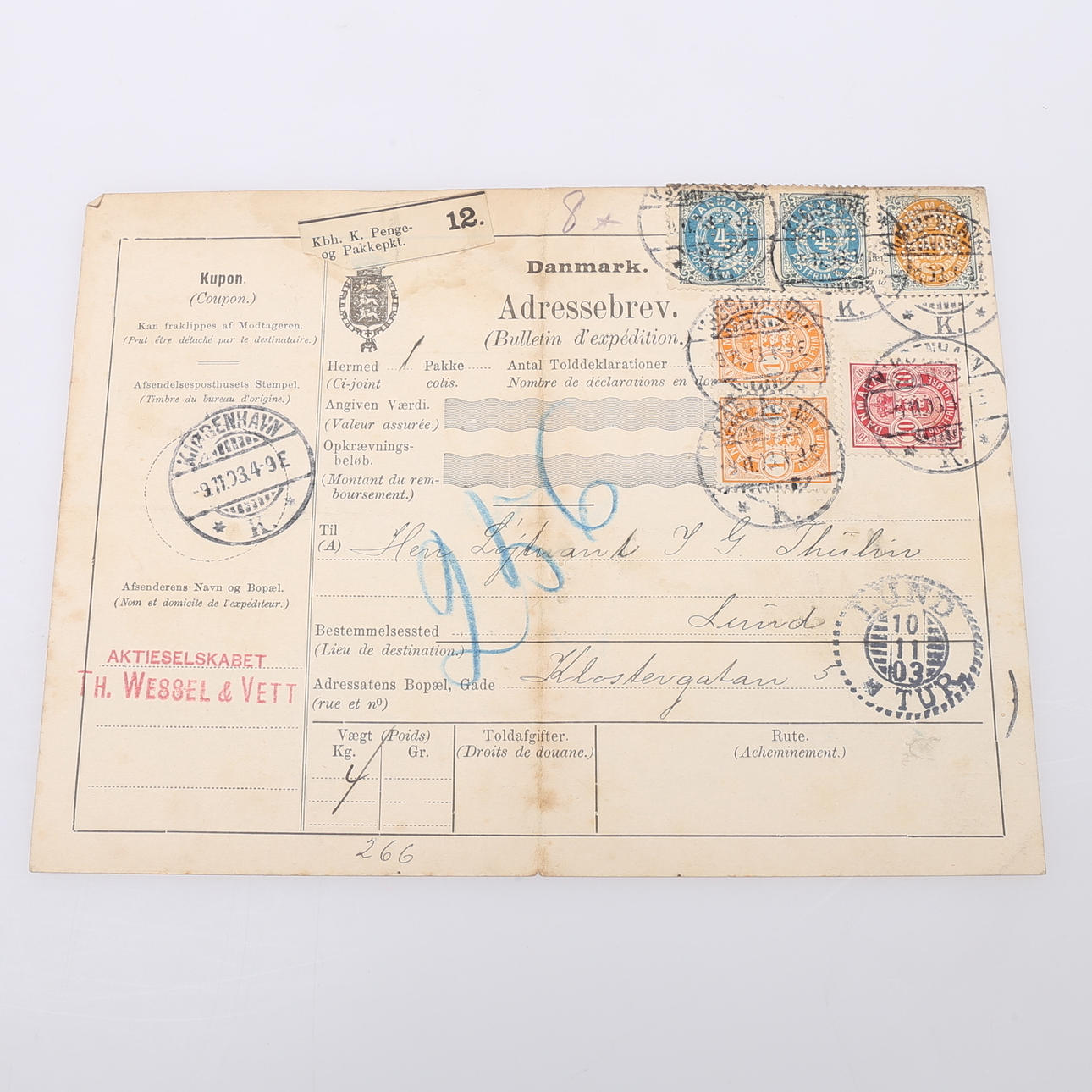 Philately and a franked address letter in 1903 to Lund.