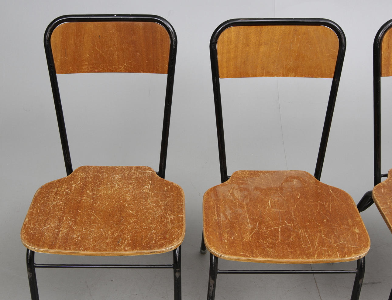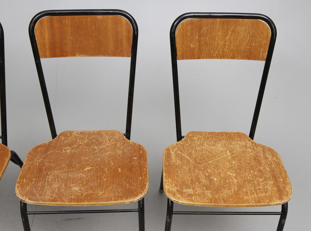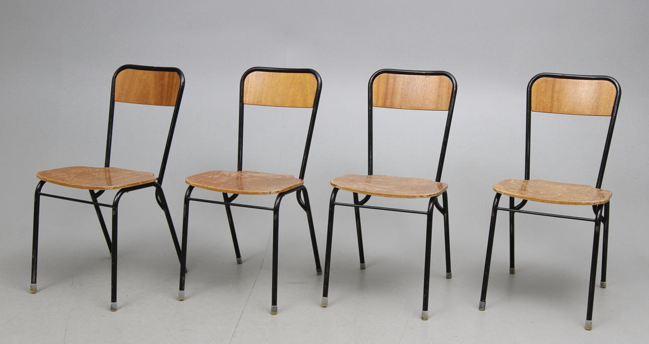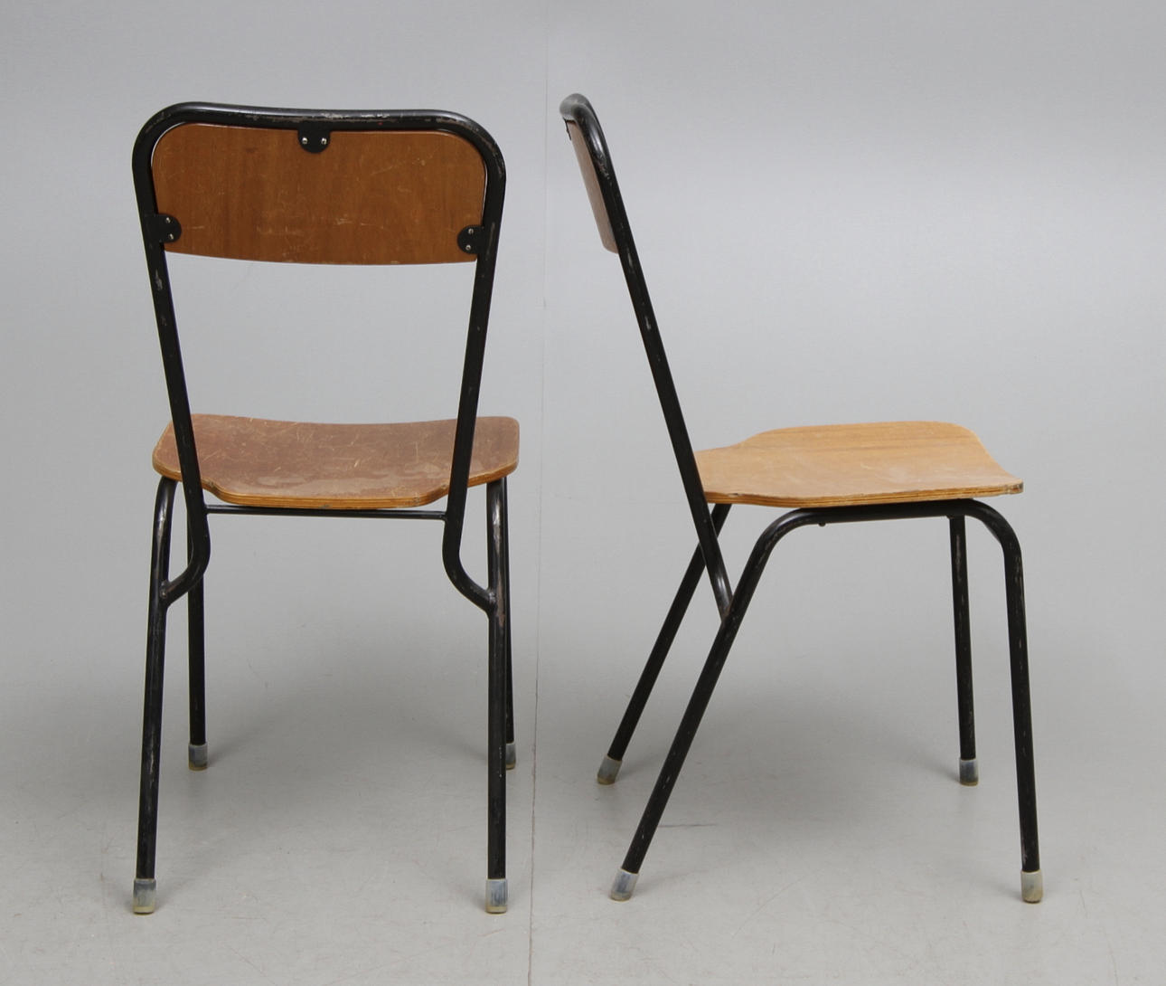 Black lacquered steel. Seat and backrest in teak. Marked with label.