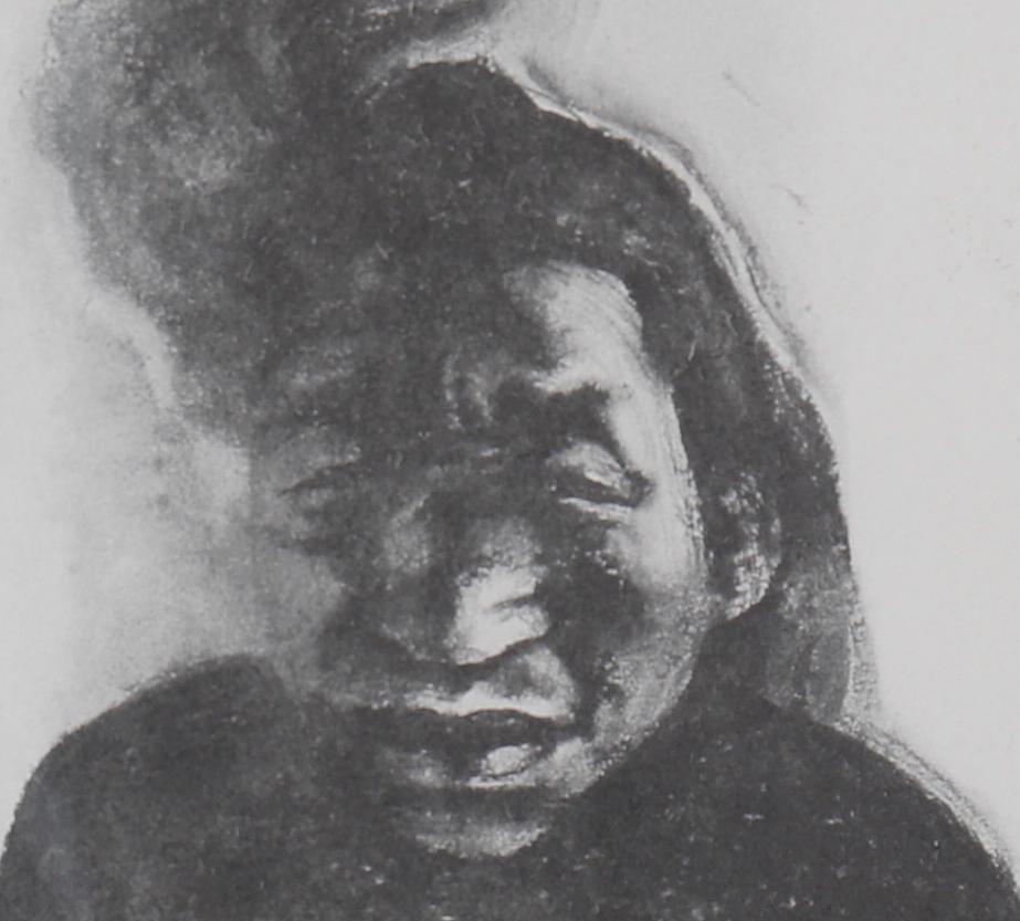 Light handling creases throughout. The sheet is slightly undulating. There is an area of skinning to the right of the figure's face.