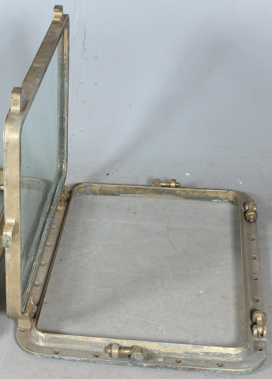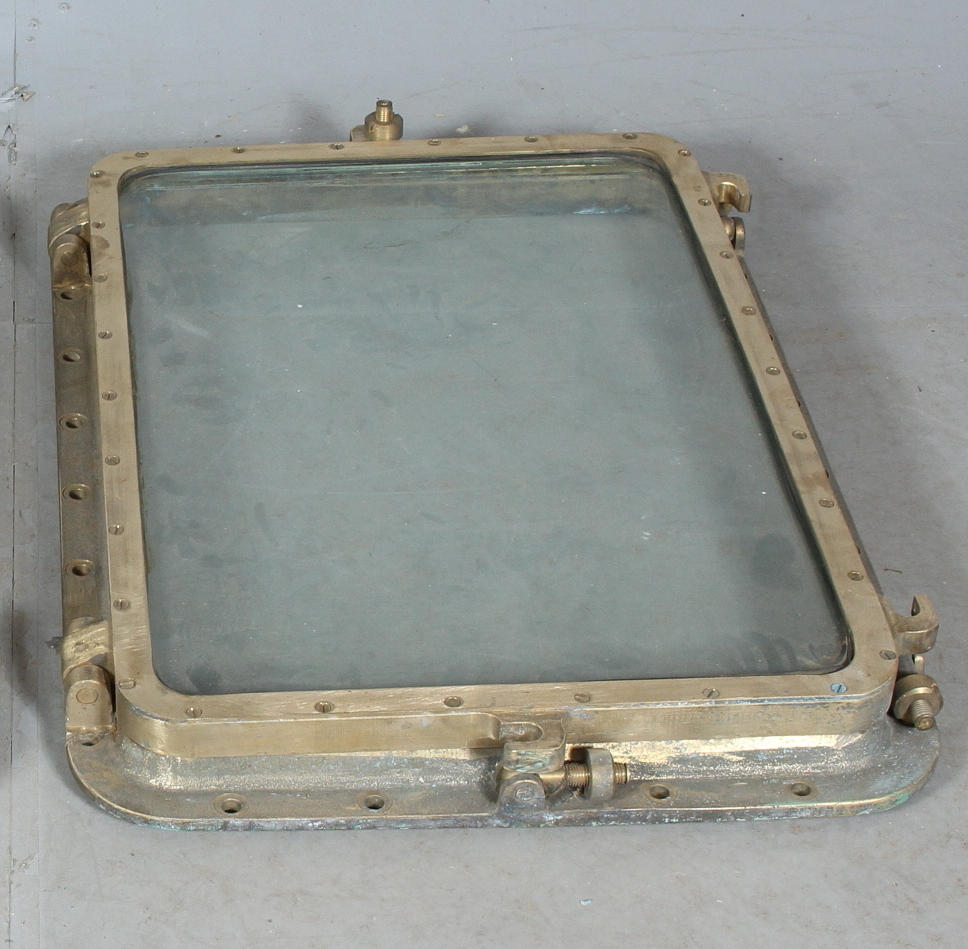 opening brass ship windows with tempered glass, made for wheelhouses of larger ocean-going ships that were never finished at the Lenin Shipyard in Gdansk.
