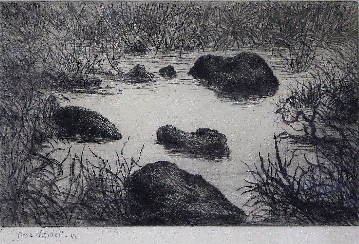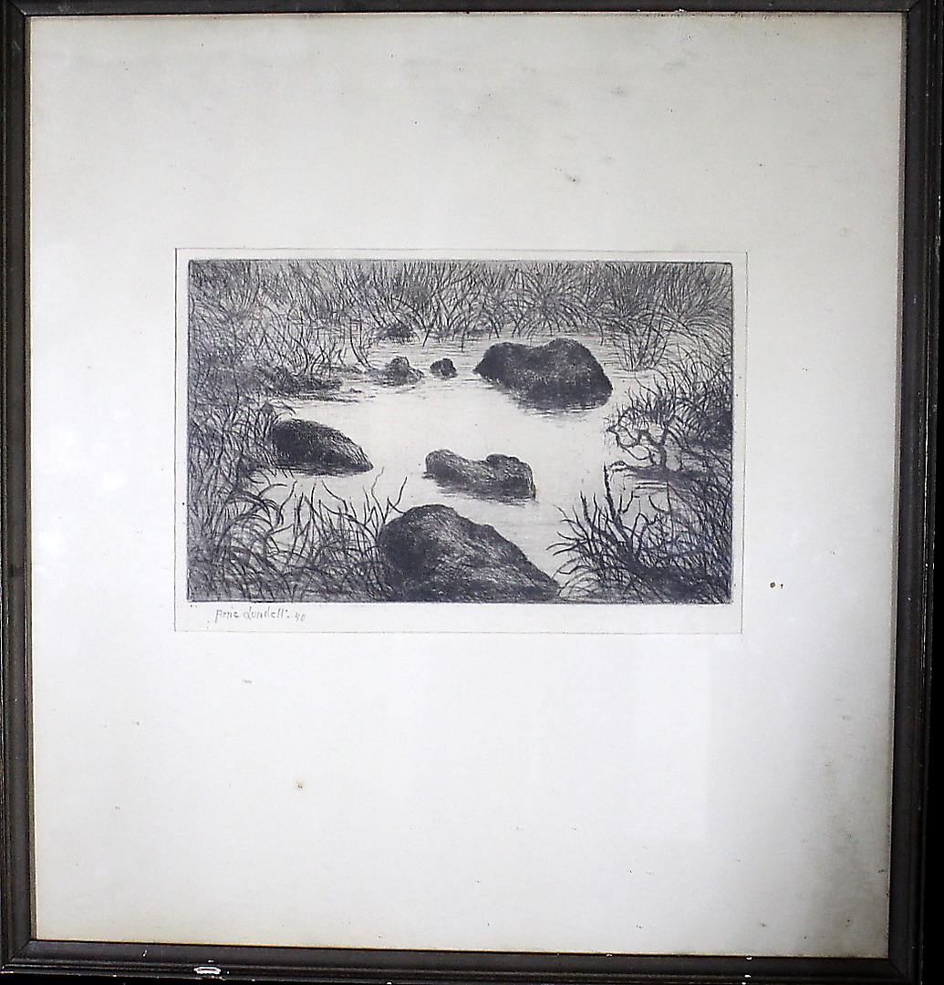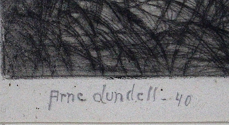 879263. CARL ARNE LUNDELL. Copper engraving, Otters, signed/dated 40.