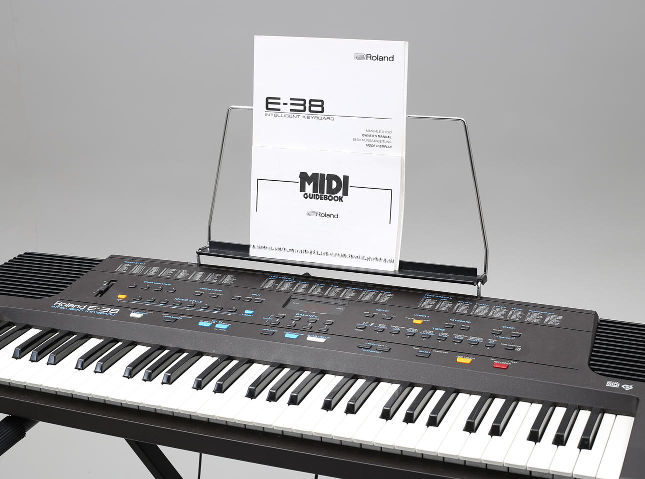 Roland E-38 Intelligent Keyboard with stand and instruction booklet.