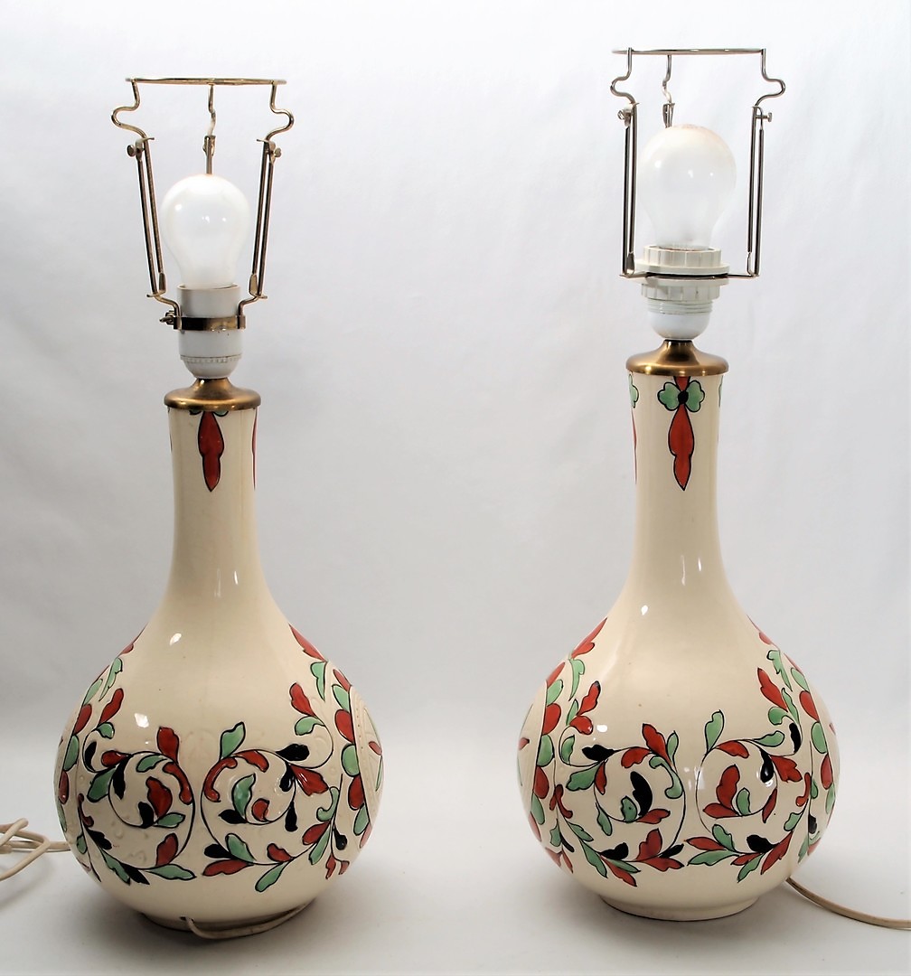 885904. TWO TABLE LAMPS, TUBE STRAND, HAND PAINTED.