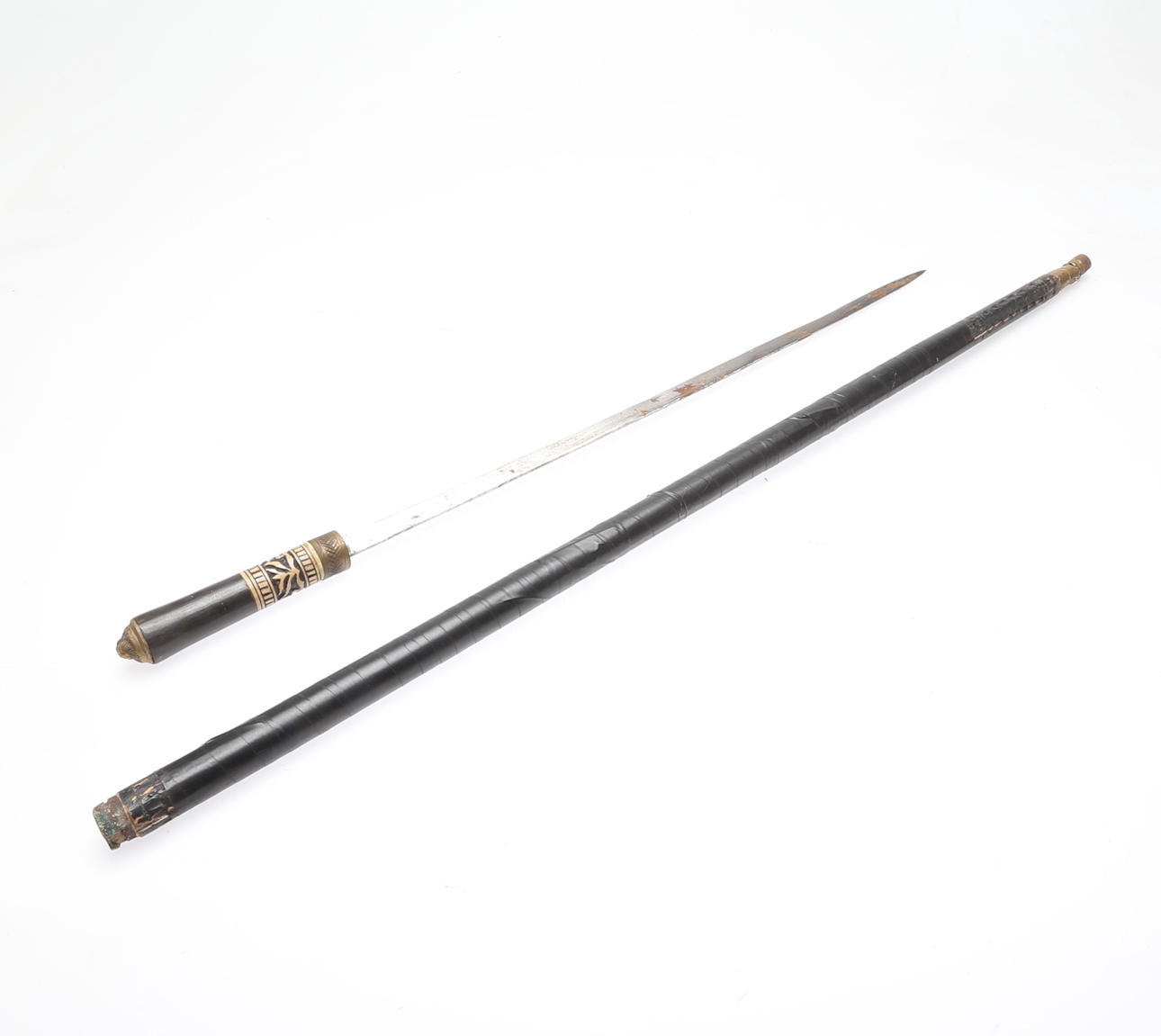 Age and wear and Normal wear and tear. Case for sword cane with damage/repairs.