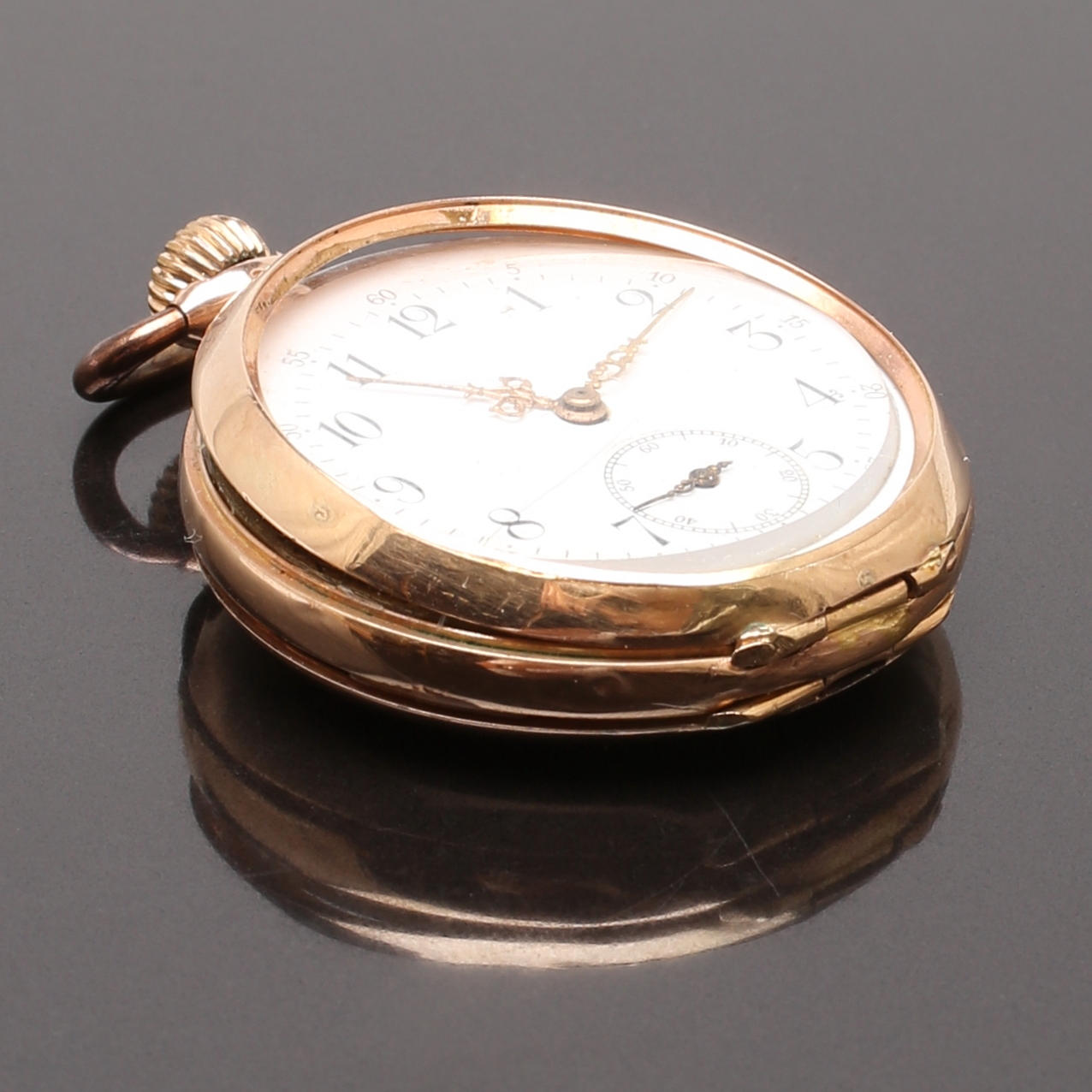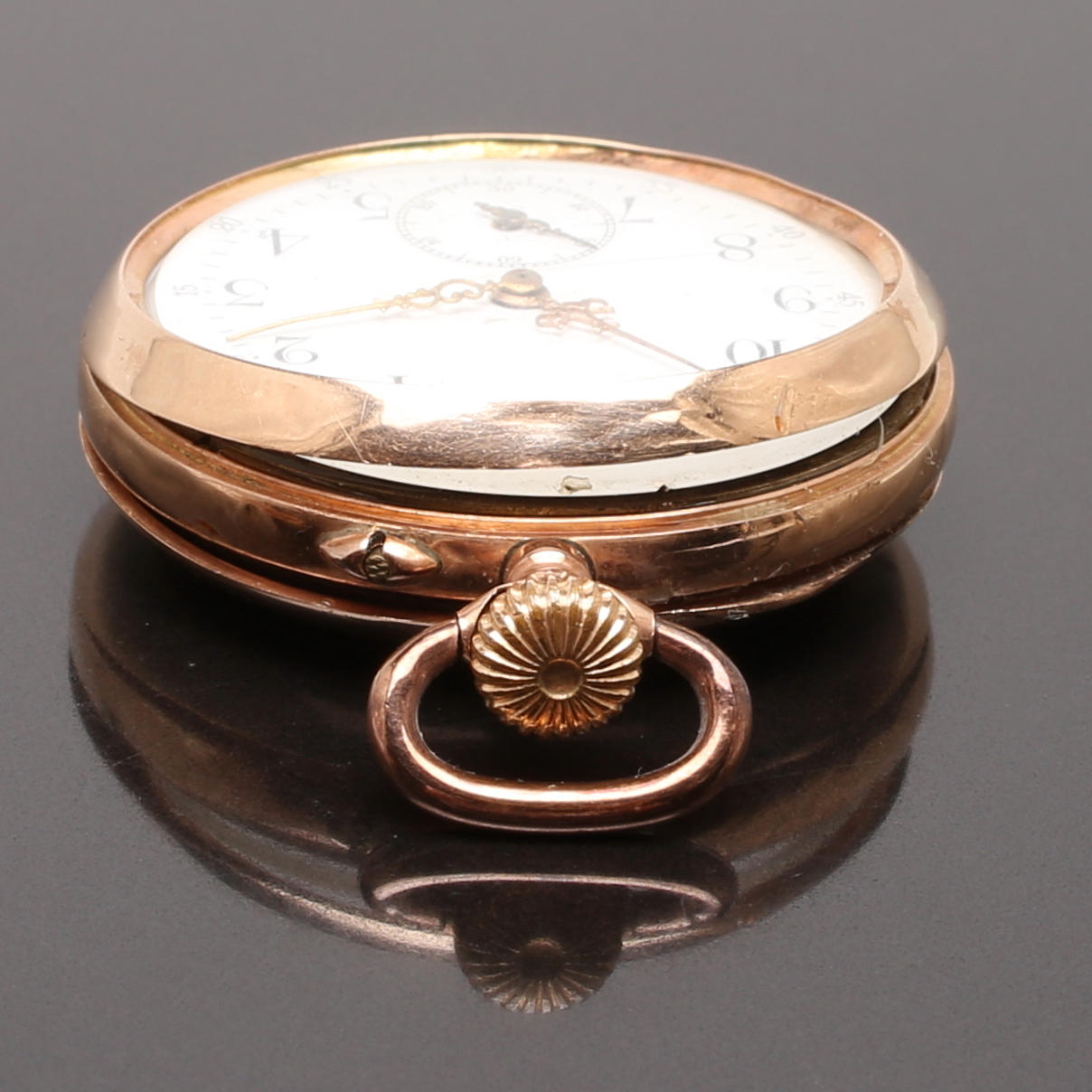 Pocket watch in red gold, stamped 14 K Diameter 37 mm total weight of the watch 38.09 grams.