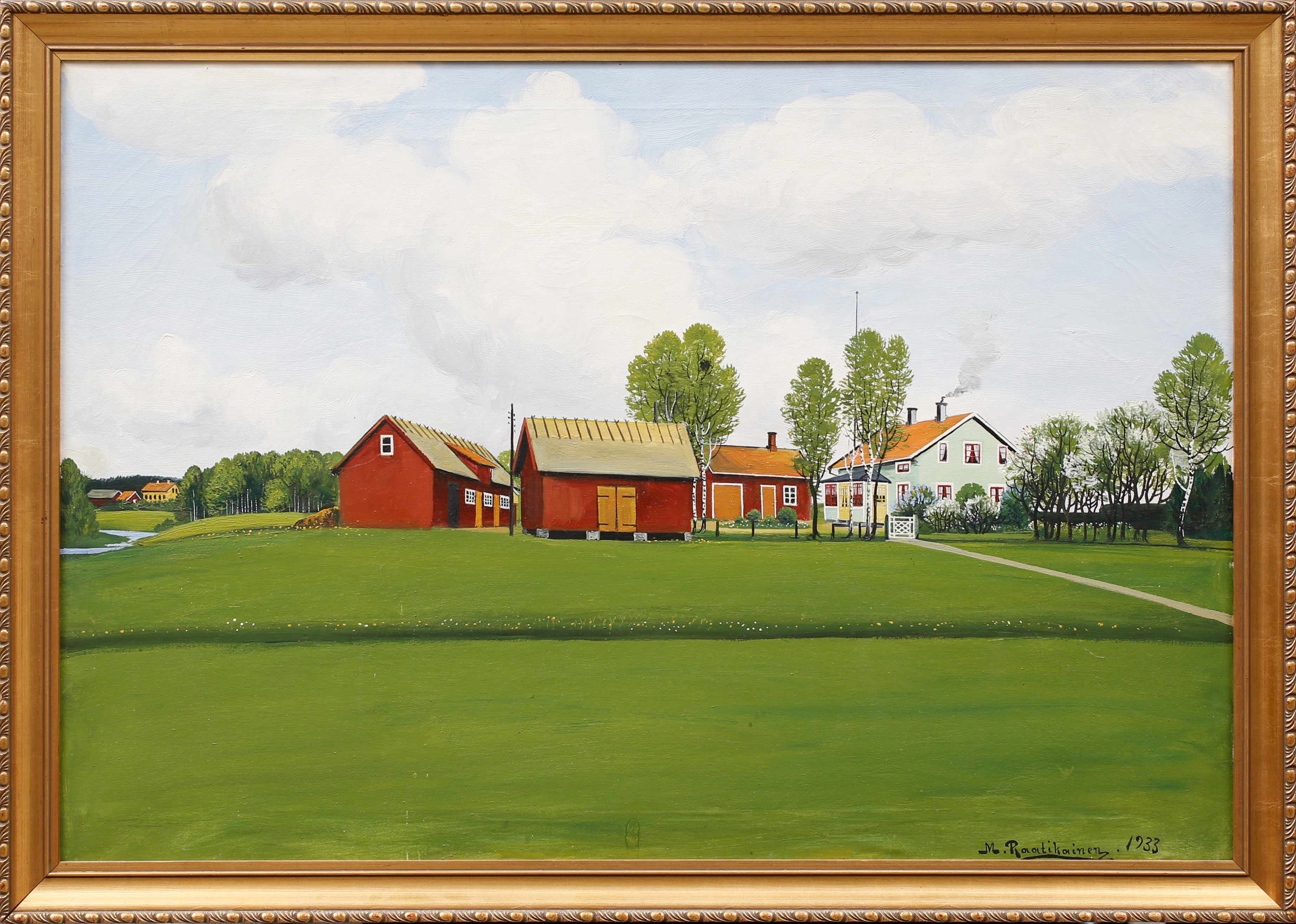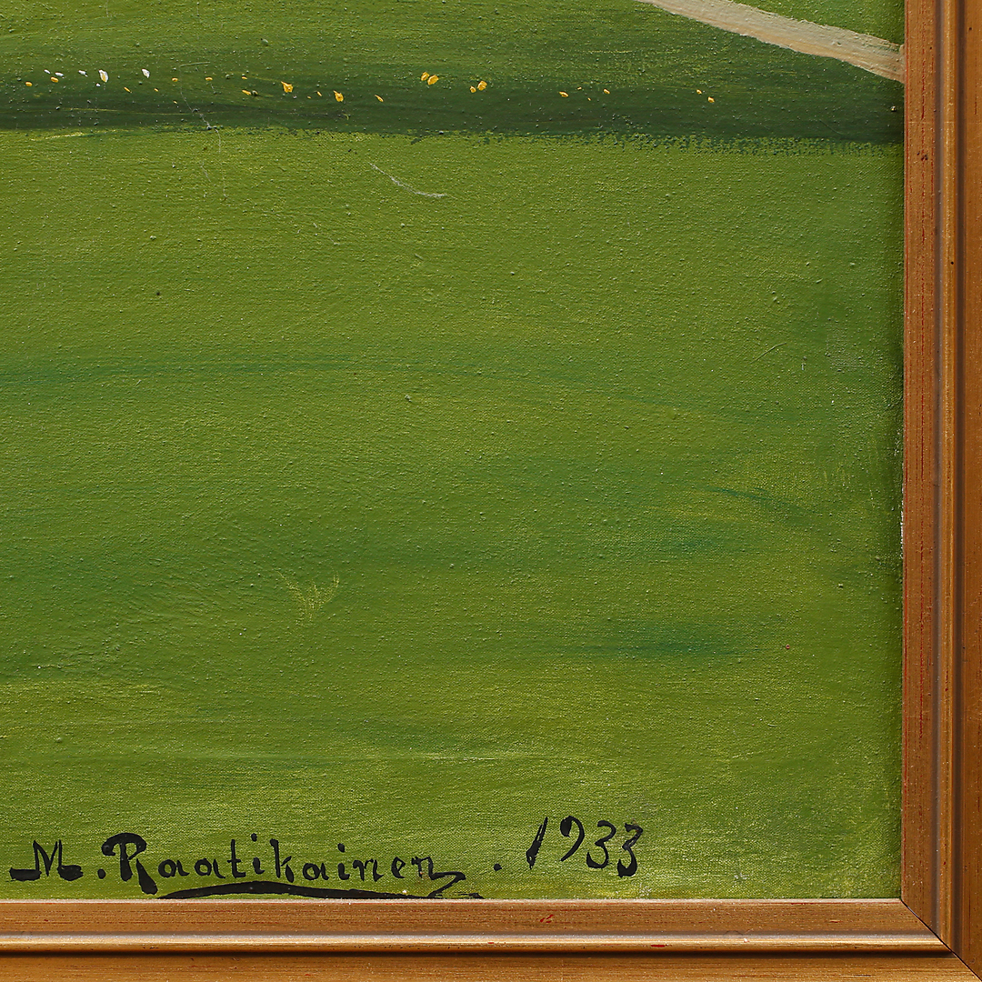 891829. MIKAEL RAATIKAINEN. Farm motif, oil on canvas, signed, dated 1933.
