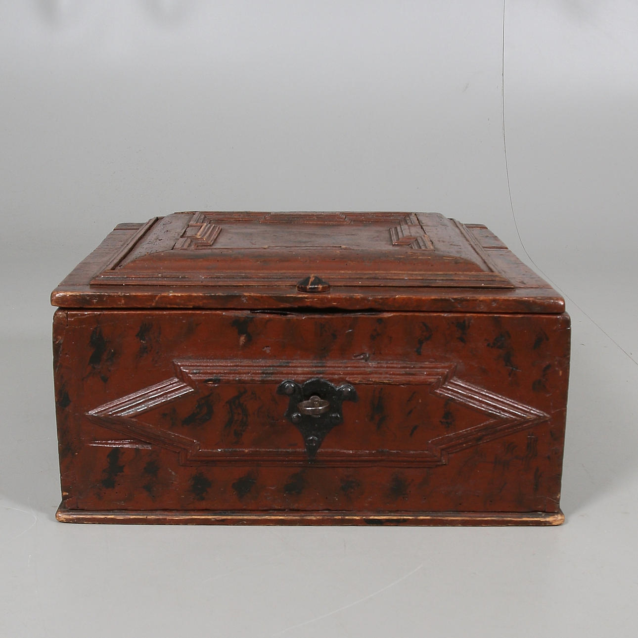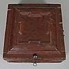 Chest of oak, with fittings and lock of wrought iron. Length 50, width 50, height 25 cm.