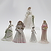 The Bride HN2166 and Cherish HN4442 and a Royal Worcester figure Belle of the Ball