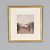 Under glass, unexamined out of glazed frame. A patch of skinning to the centre sky. A diagonal scratch to the left edge. Some light colour discoloration throughout. A small scratch the gentleman's hat.