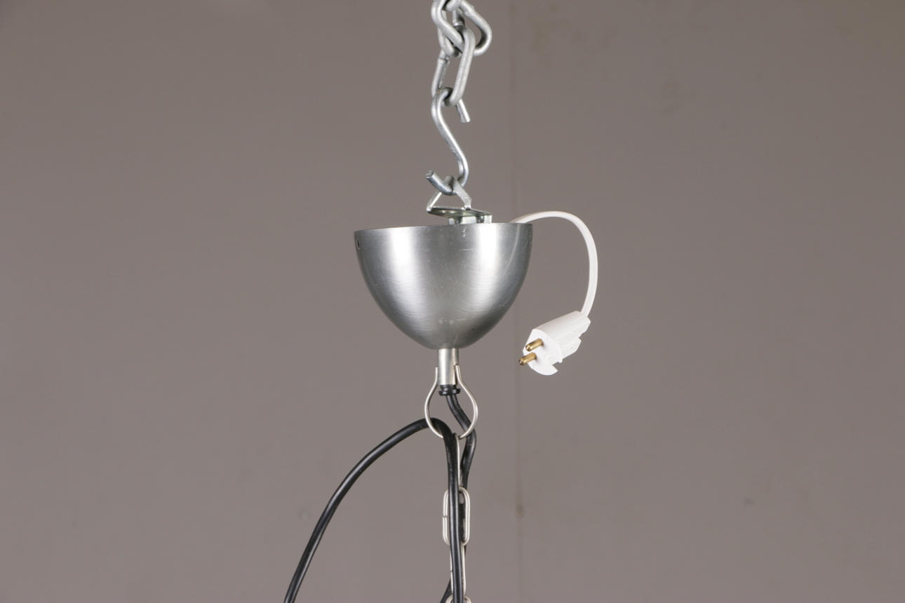 Ceiling lamp in riveted sheet metal with a light point Diameter 34, height 46 cm excluding suspension.