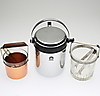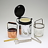 Glass, chromed metal and copper. With ice bars. Height approx. 10-19 cm.