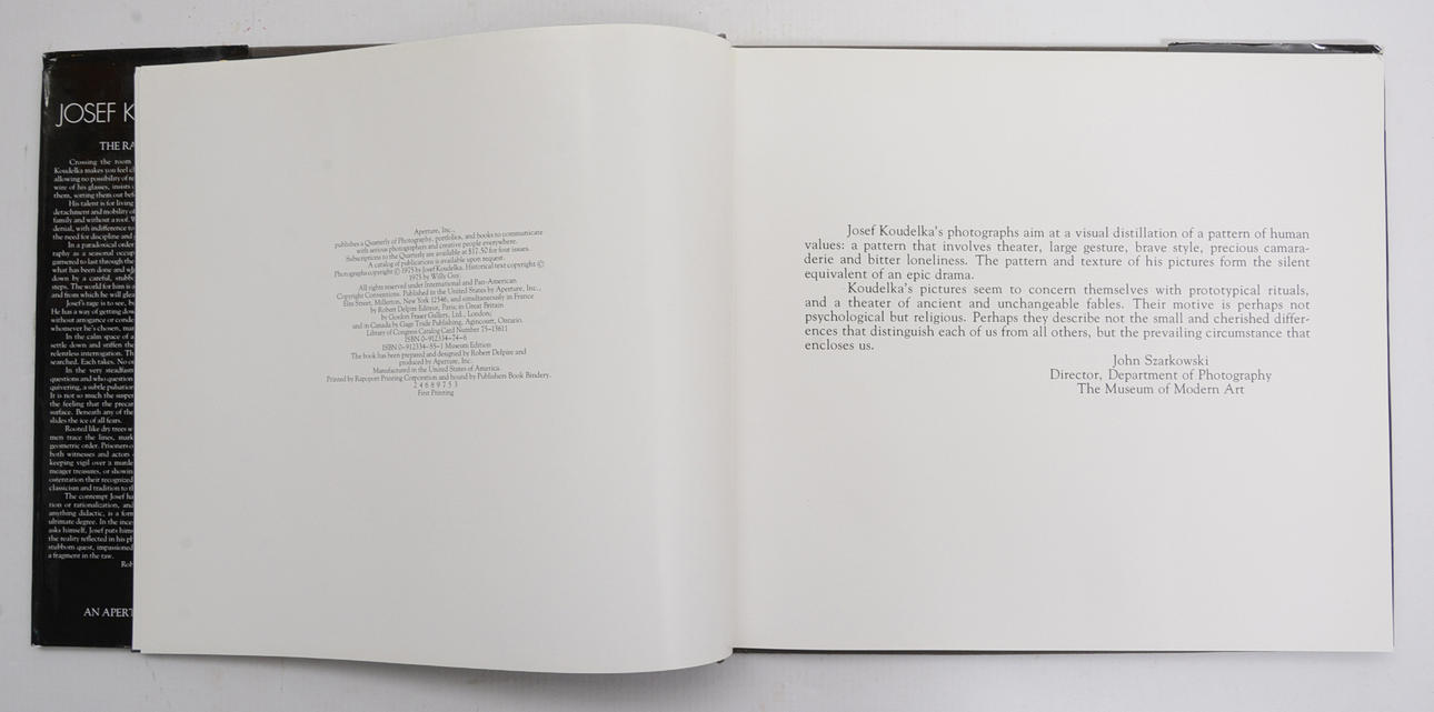 Aperture, New York 1975. First edition. Unpaginated. Publisher's cloth backed boards, no jacket. 27.5x30.5 cm. Koudelka's first book.