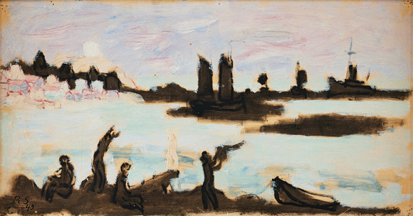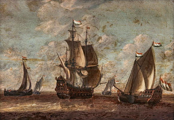 916059. OIDENTIFIERAD KONSTNÄR. Oil on canvas, Motif of a ship. Signed EJ Jones.