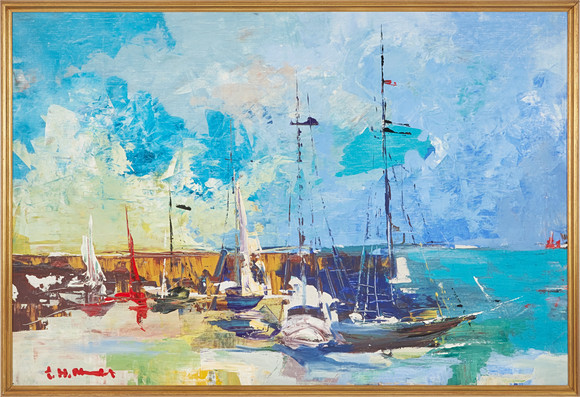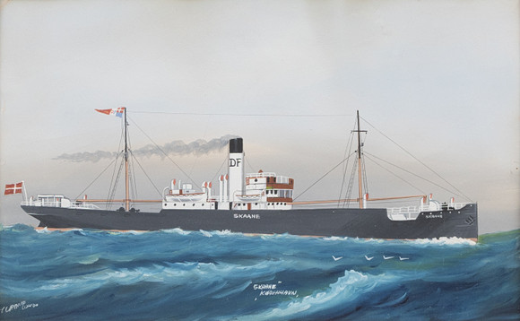 OIDENTIFIERAD KONSTNÄR. Oil on canvas, Motif of a ship. Signed EJ Jones.