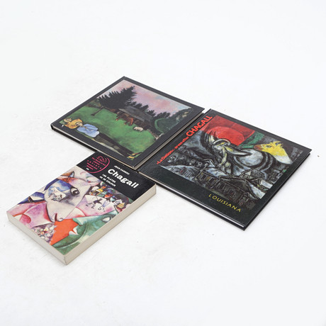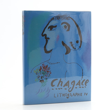 Chagall, Marc, Russian-French artist (1887-1985). Lithographs I-IV ( of 6).) First part of the English edition published by André Sauret, Monte Carlo, and A. Zwemmer, London, together in 1960. The other three parts of the French edition published by André Sauret, Monte Carlo. All between 1960 and 1974. Four folio volumes in the publisher's gray linen binding with text in black. With protective cover and extra transparent protective cover (except the third part.) The first volume with 12 original lithographs, the second part with 12 original lithographs, parts 3 and 4 with 2 original lithographs each including the covers and frontispieces. A total of 28 original lithographs printed by the Mourlot brothers in Paris. In the fifth and sixth parts, there were no original lithographs.