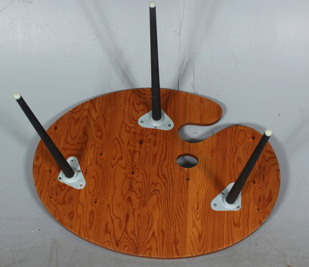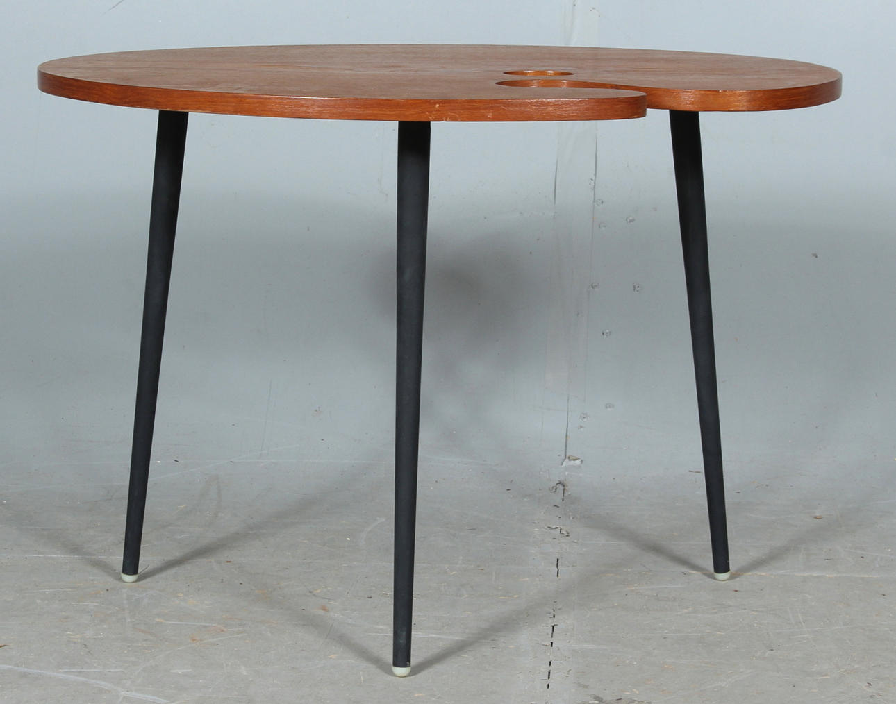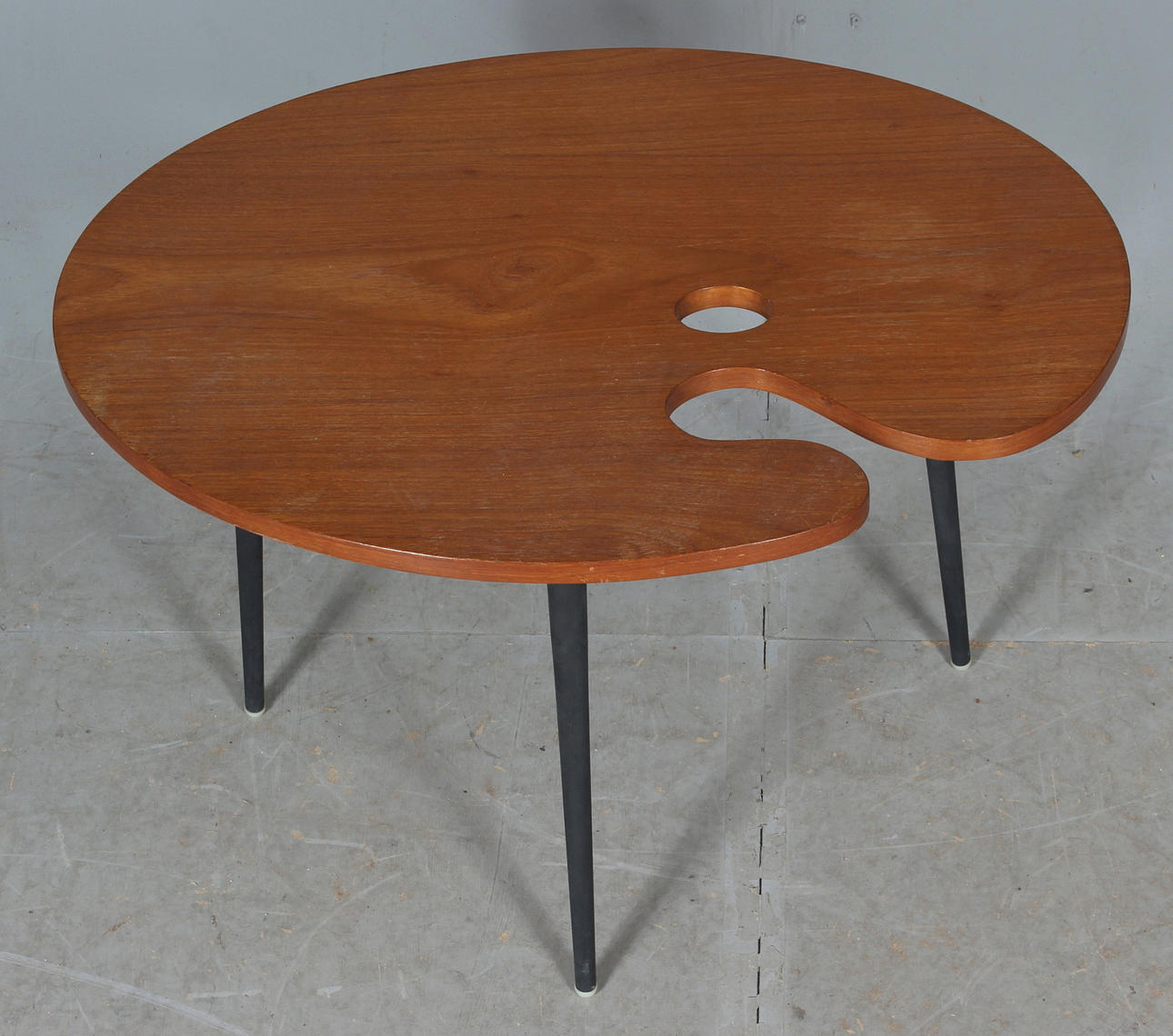 TABLE, "palette", Teak veneer, mid-20th century.