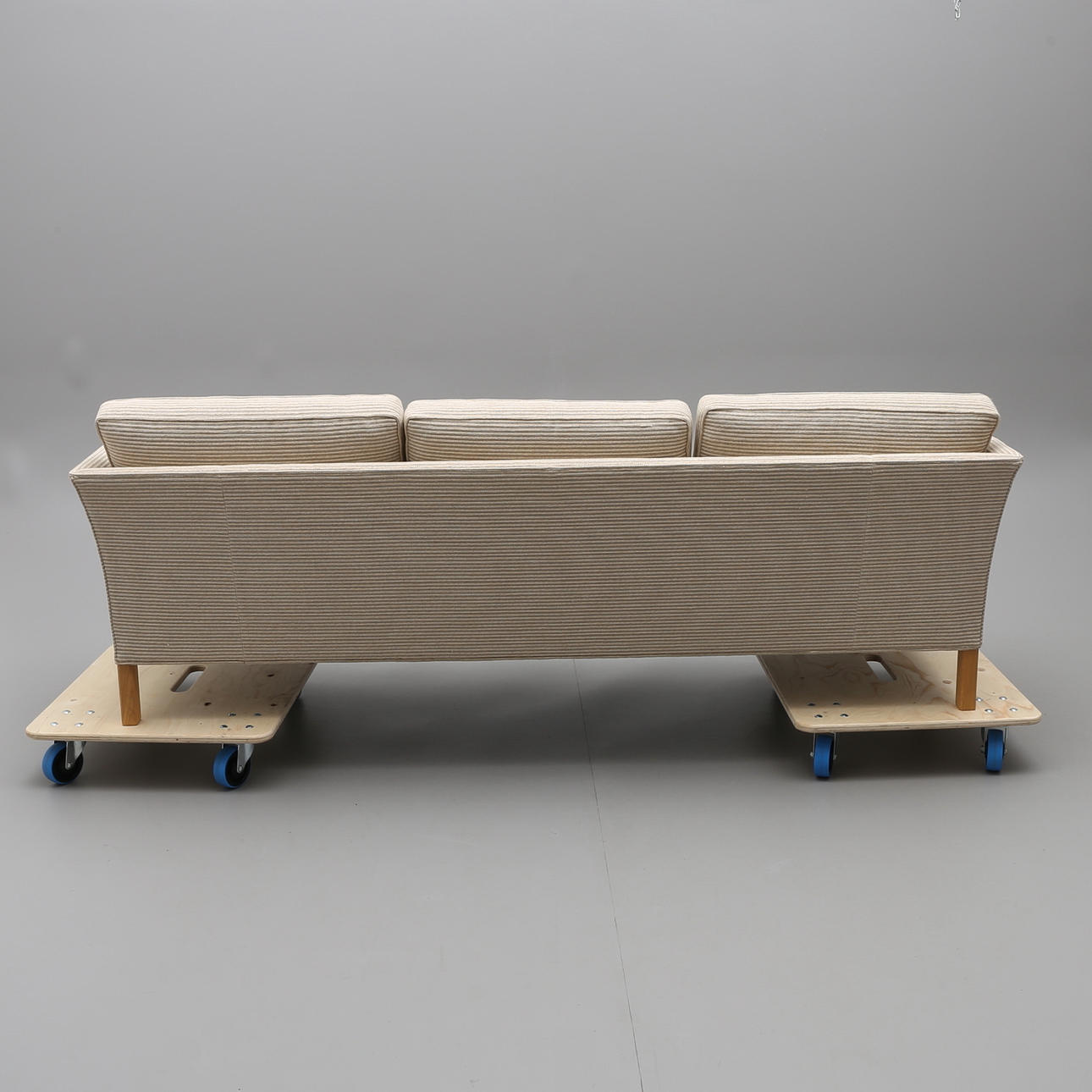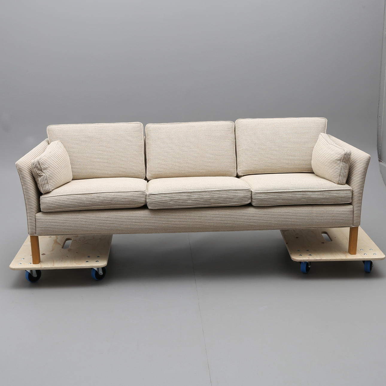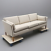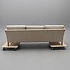 Dressed in wool fabric, loose feathers, labeled Norell, length 210 cm, height approx. 76 cm, seat height approx. 46 deep, seat depth approx. 52 cm.
