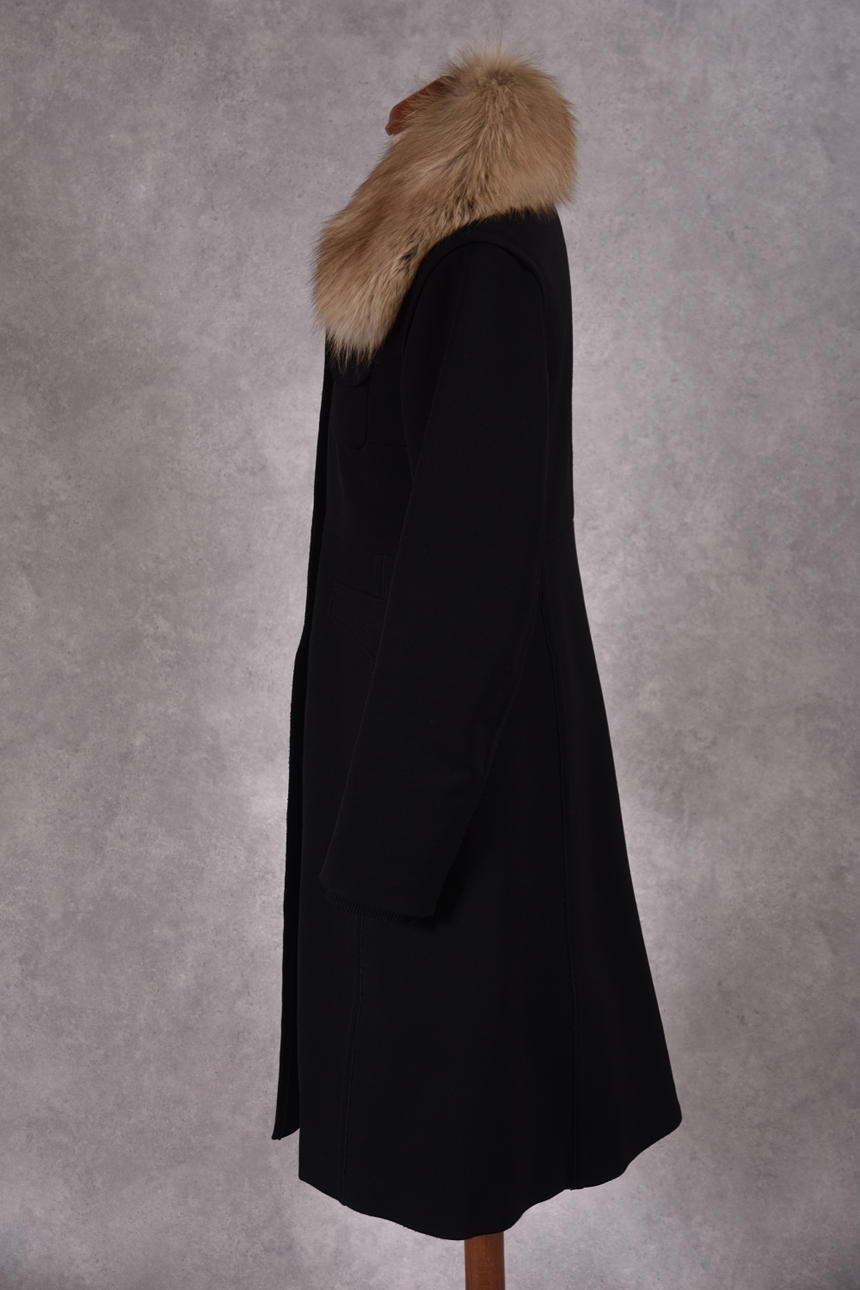 Size Italian 40 According to the submitter size 36 /38 Back length 103 cm Removable fur collar.