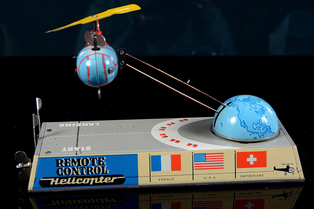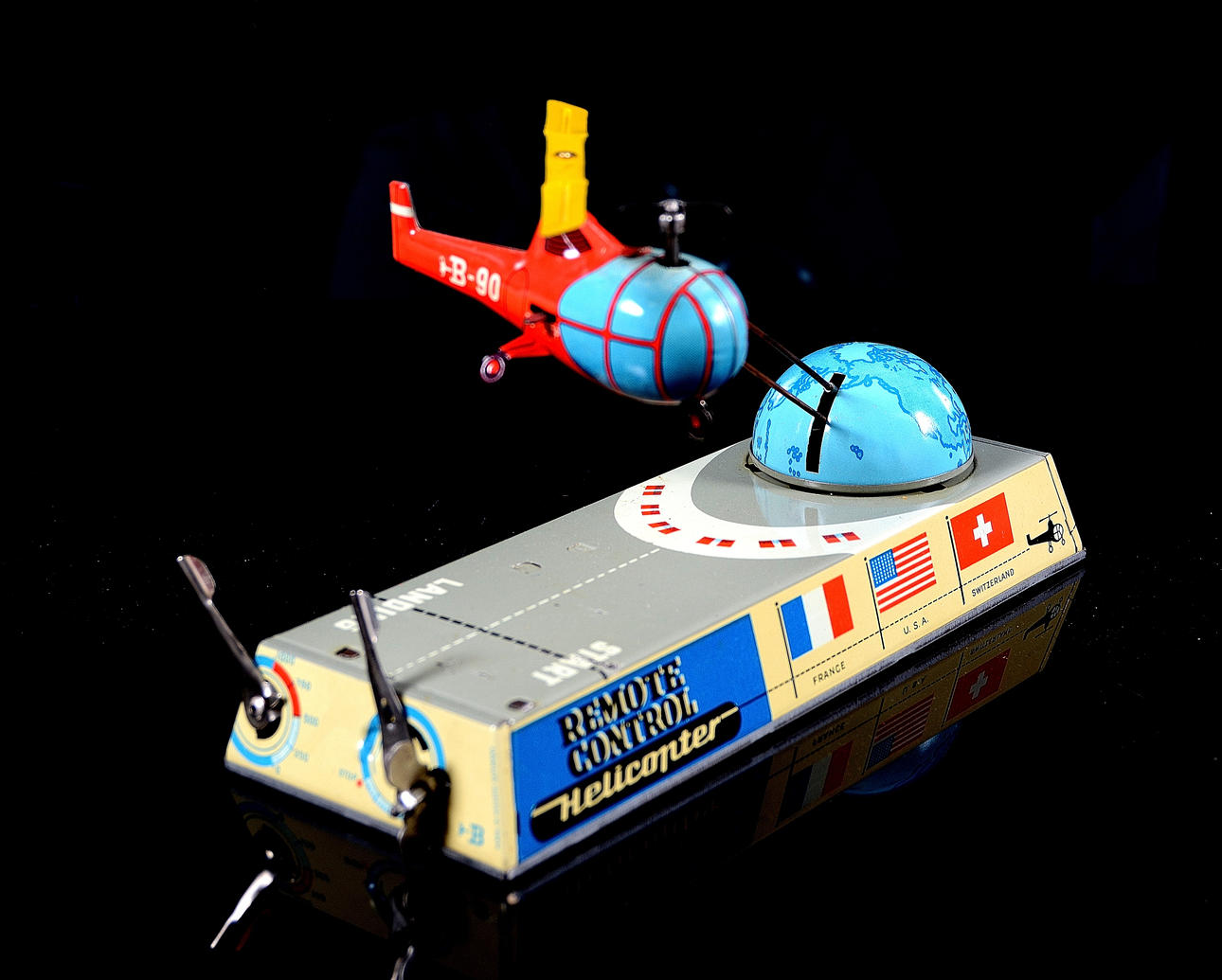 TOY HELICOPTER, lithographed plate, Remote control, Biller Bahn, 1950s.