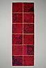 Persian gallery carpet in patchwork technique, consisting of joined pieces of older carpets. Post-dyed and lined on gray textile.
