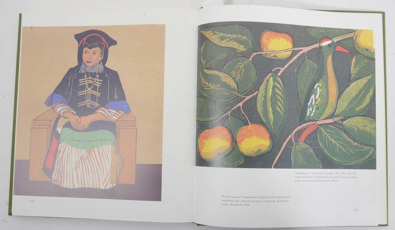 Lidén, Anne: Stockholm: Bonniers, 1986. Bibliophile edition printed in 200 numbered copies, this number 131, and signed by Sven Ljungberg and Anne Lidén. With an original black and white woodcut mounted on front cover, numbered and signed by Sven Ljungberg. 213, (3) p. 27x24 cm. Bound in the publisher's ball binding in ball cassette. Illustrated in color and black and white.