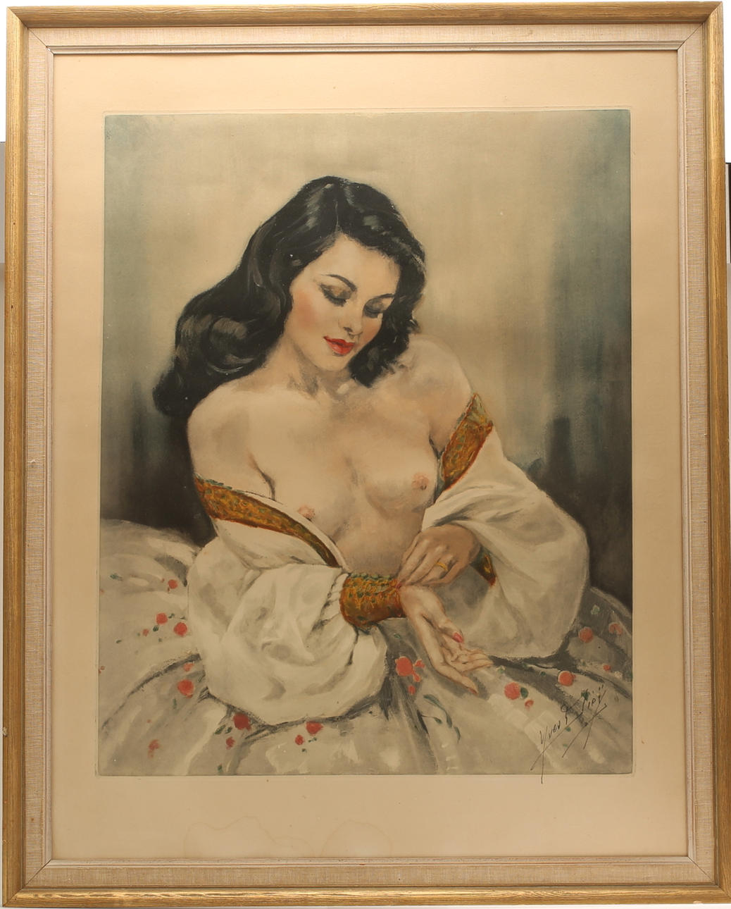 946987. YVES DIEY, mixed media, "Sitting model", signed.