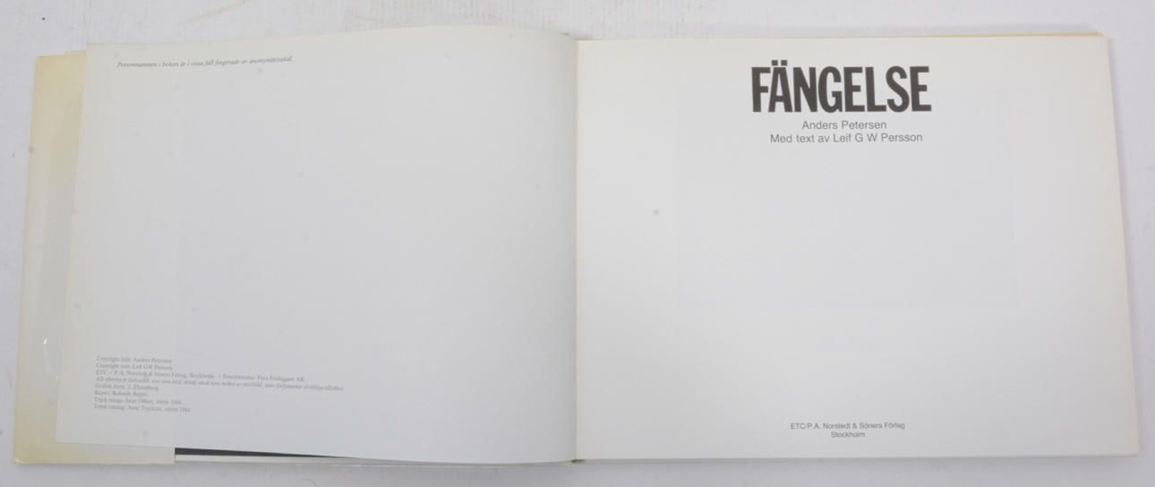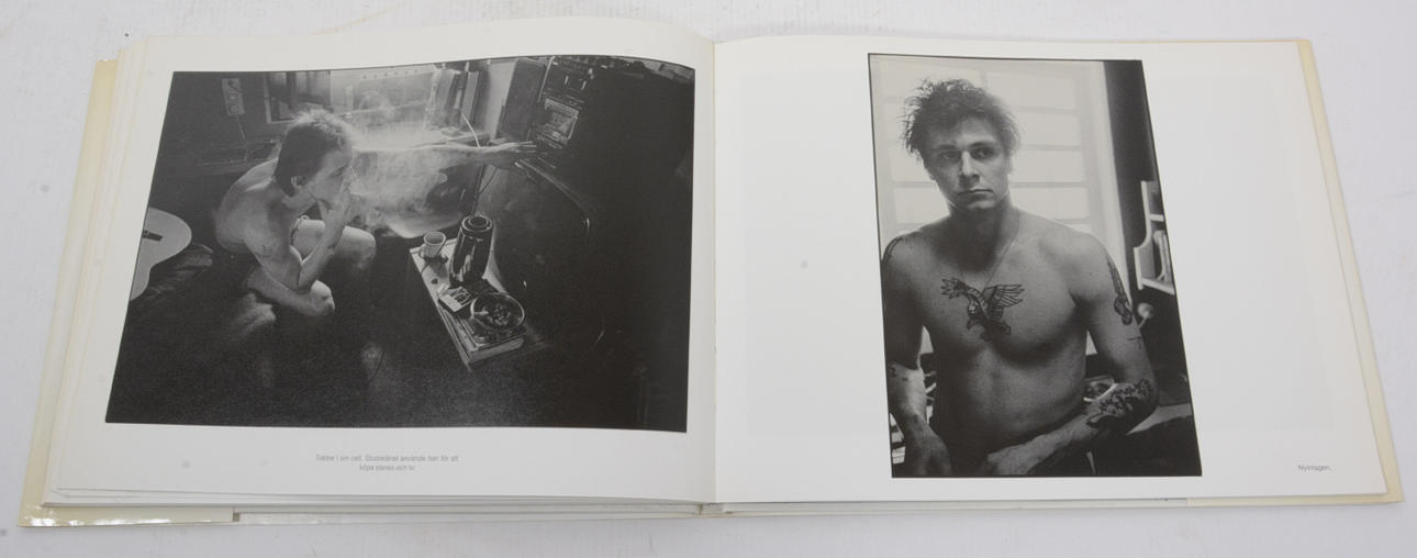 With text by Leif GW Persson. ETC / Norstedt & Söners. Stockholm 1984. 52 unpaginated leaves 104 pages. The publisher's white cardboard binding with black cover and spine title and dust jacket. 24x30.5 cm. First edition.