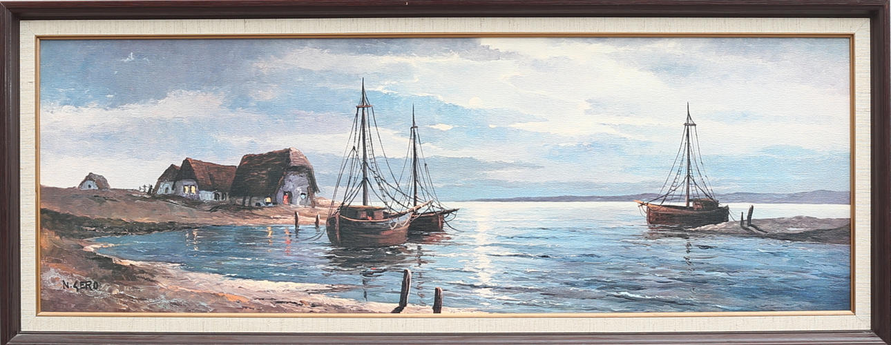 Coastal motif, oil on Board, signed N. Gero, 35 x 100 cm.