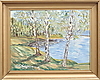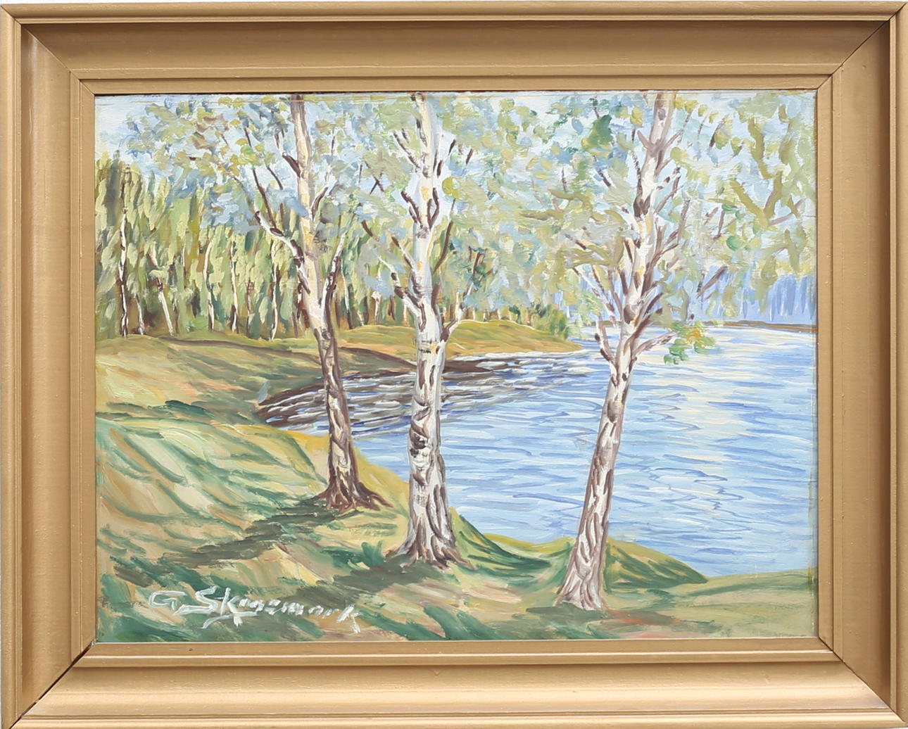 Birches by the water, Gunnar Skogsmark, oil on Board, 46 x 60 cm.