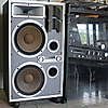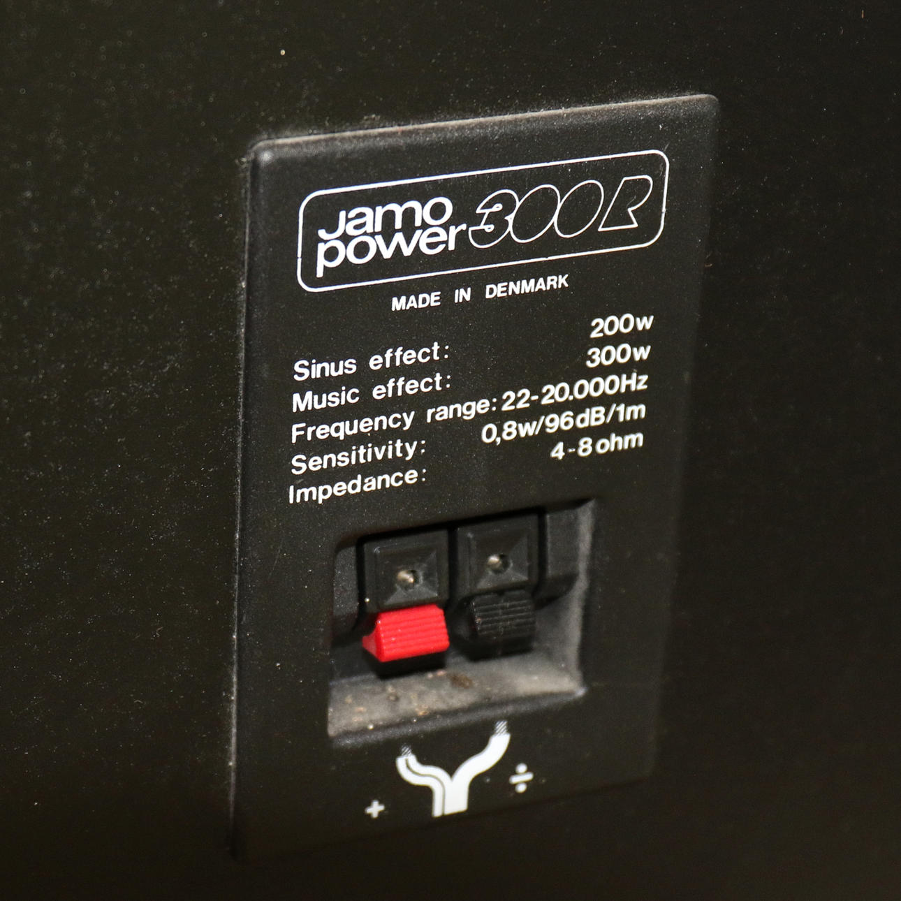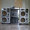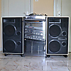 Speakers: Jamo Power 300R. Dimensions 85 x 46 x 31 cm, stands on four wheels.