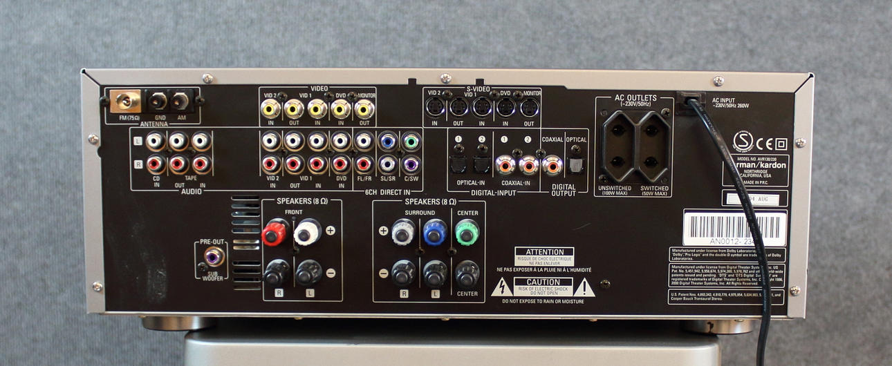 Reciever, 5 speakers + subwoofer - Harman/kardon HKTS 7 Various cables and papers included.