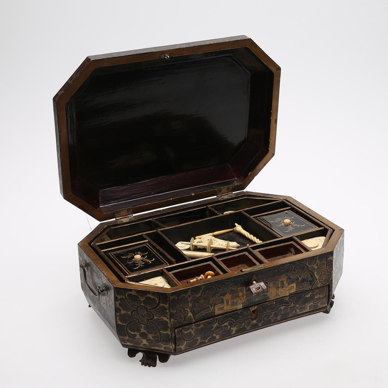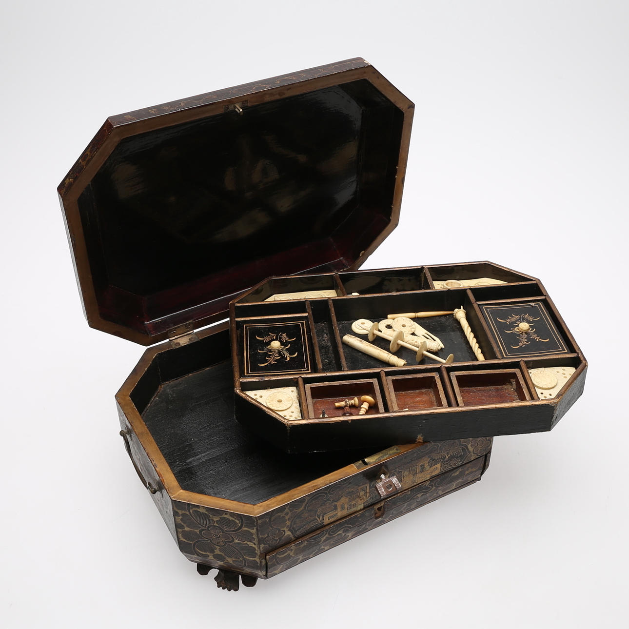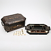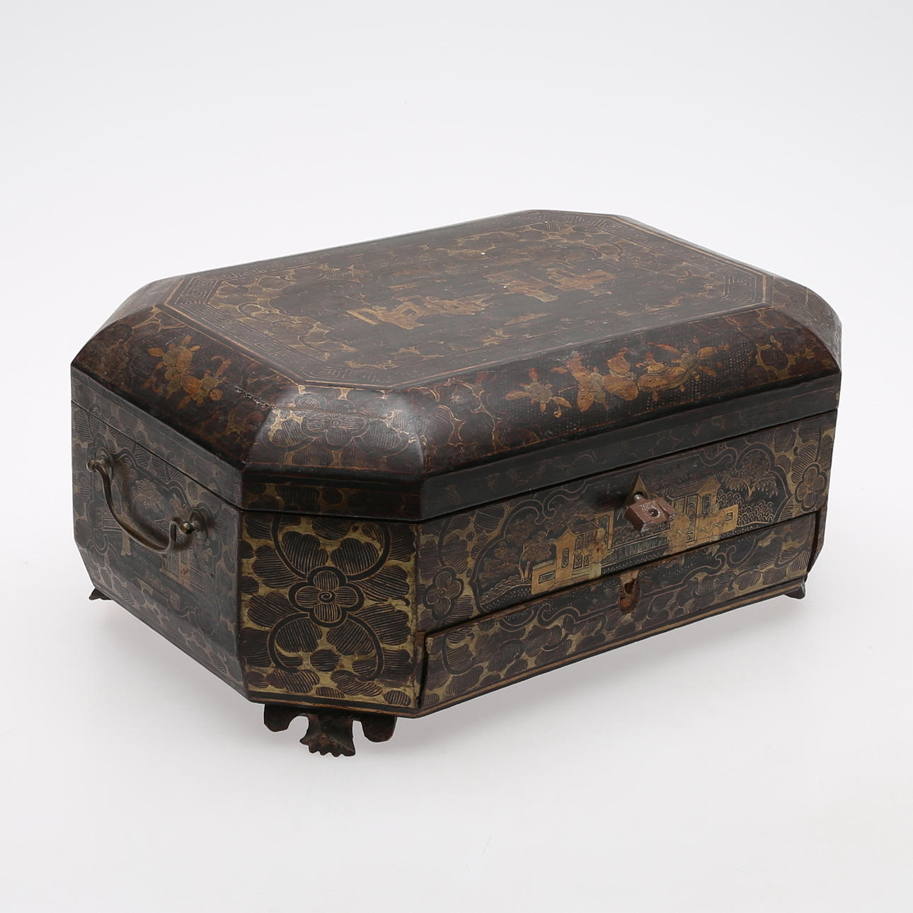 Normal wear and tear, contents incomplete, pull knob missing, key not original.