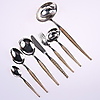 6 knives, length 21 cm 6 forks, length 19.5 cm 6 spoons, length 20 cm 6 spoons, length 14 cm 4 serving cutlery, such as ladles and spoons, length 18-28 cm.