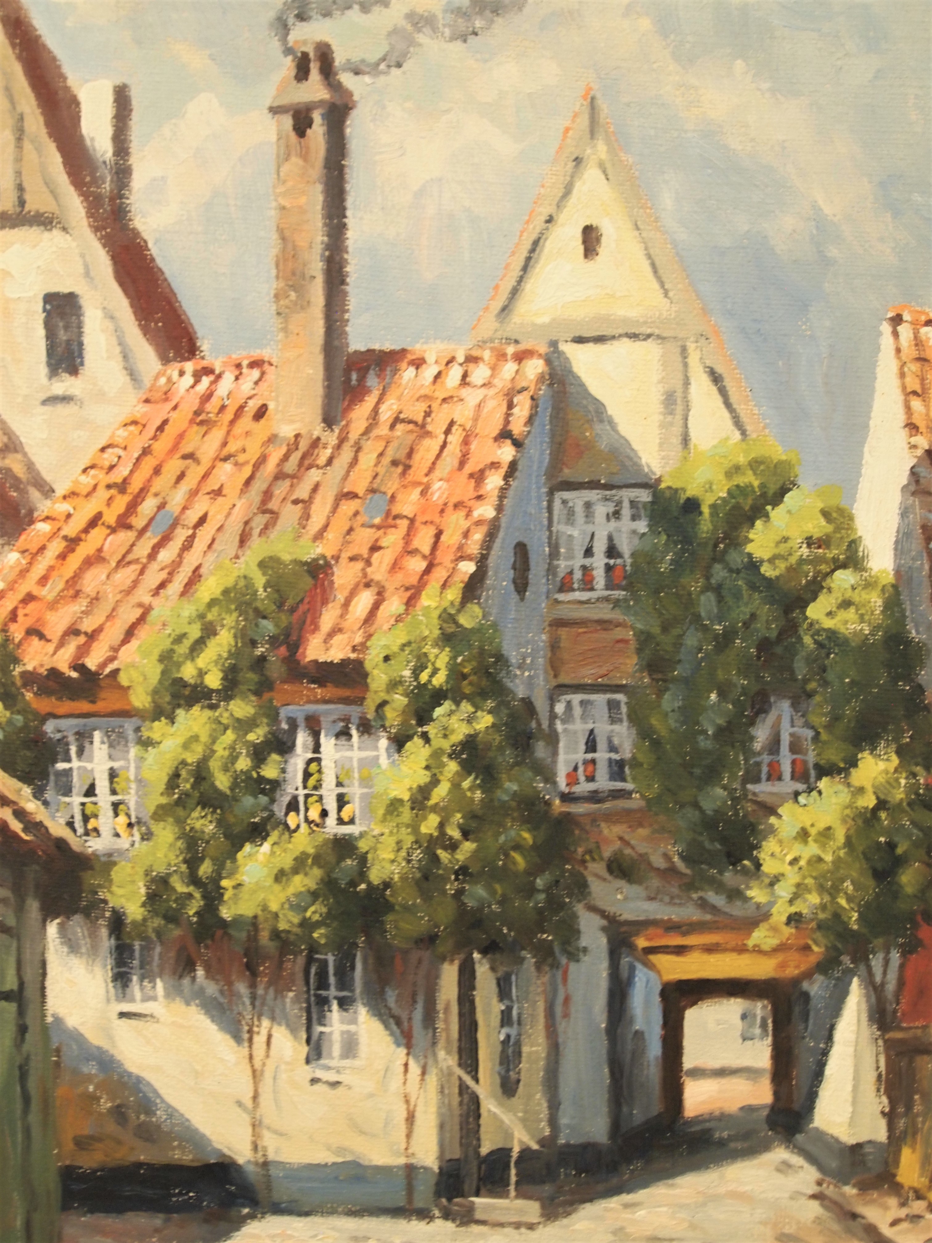 963166. VALDEMAR ALBERTSEN. OIL PAINTING, "City street".