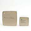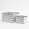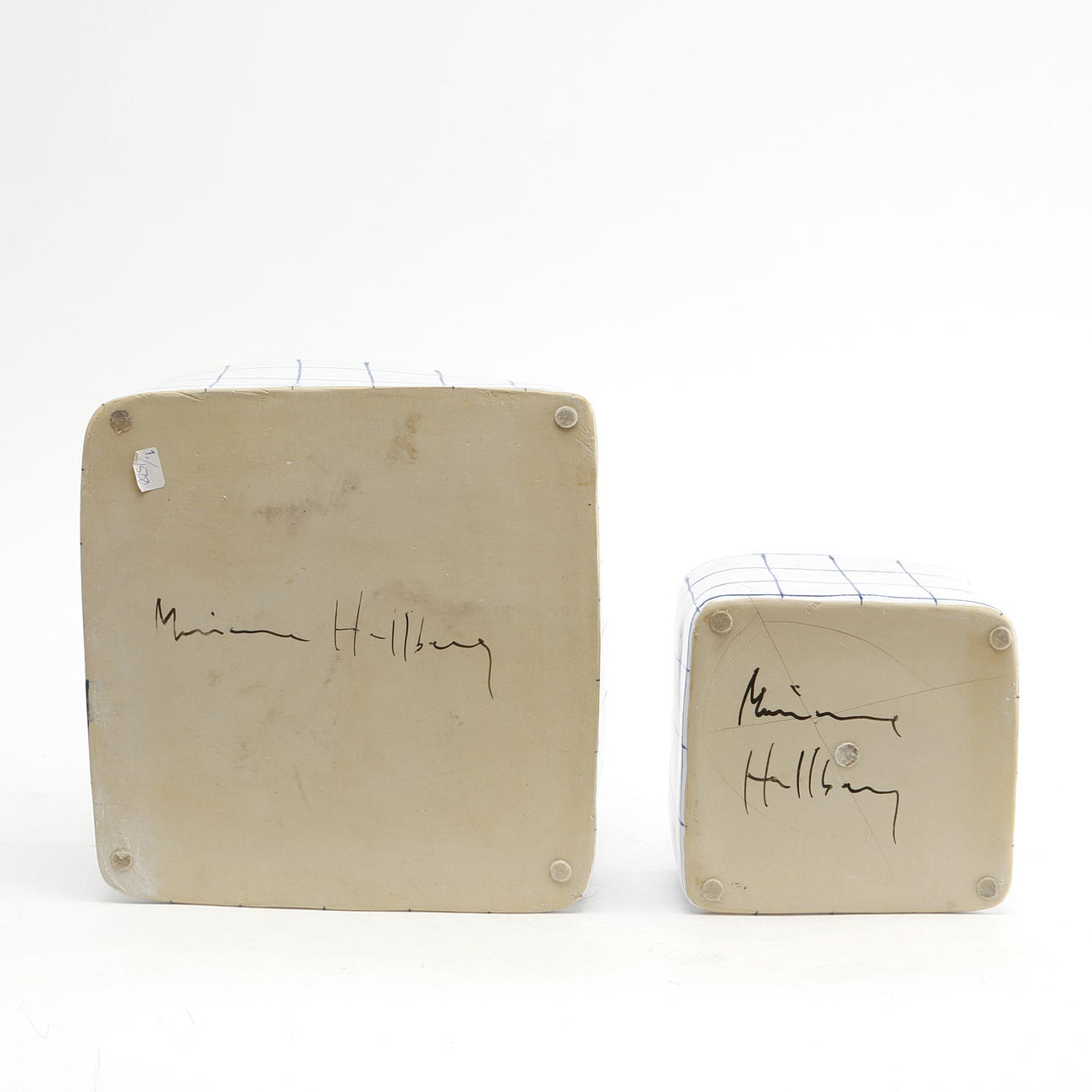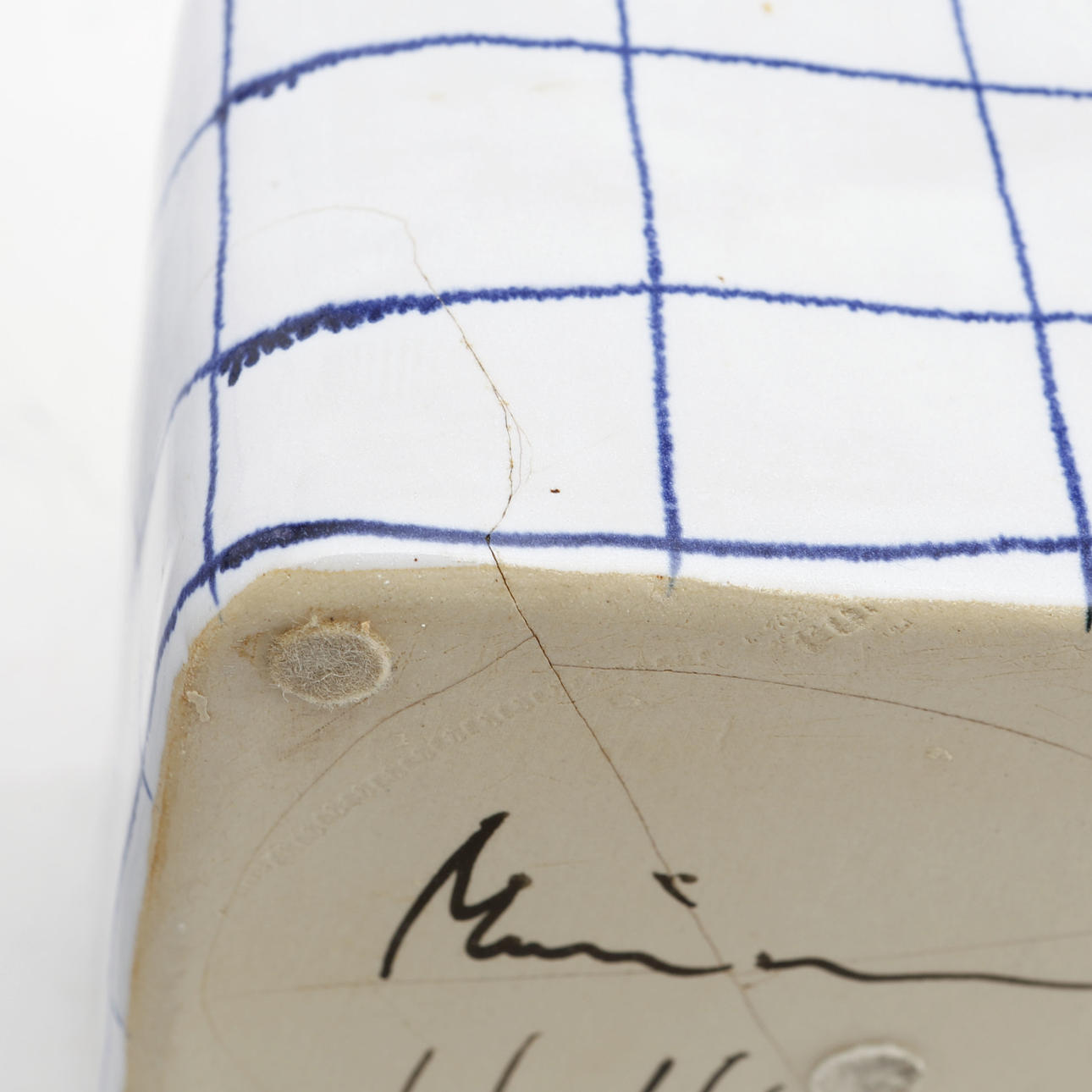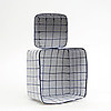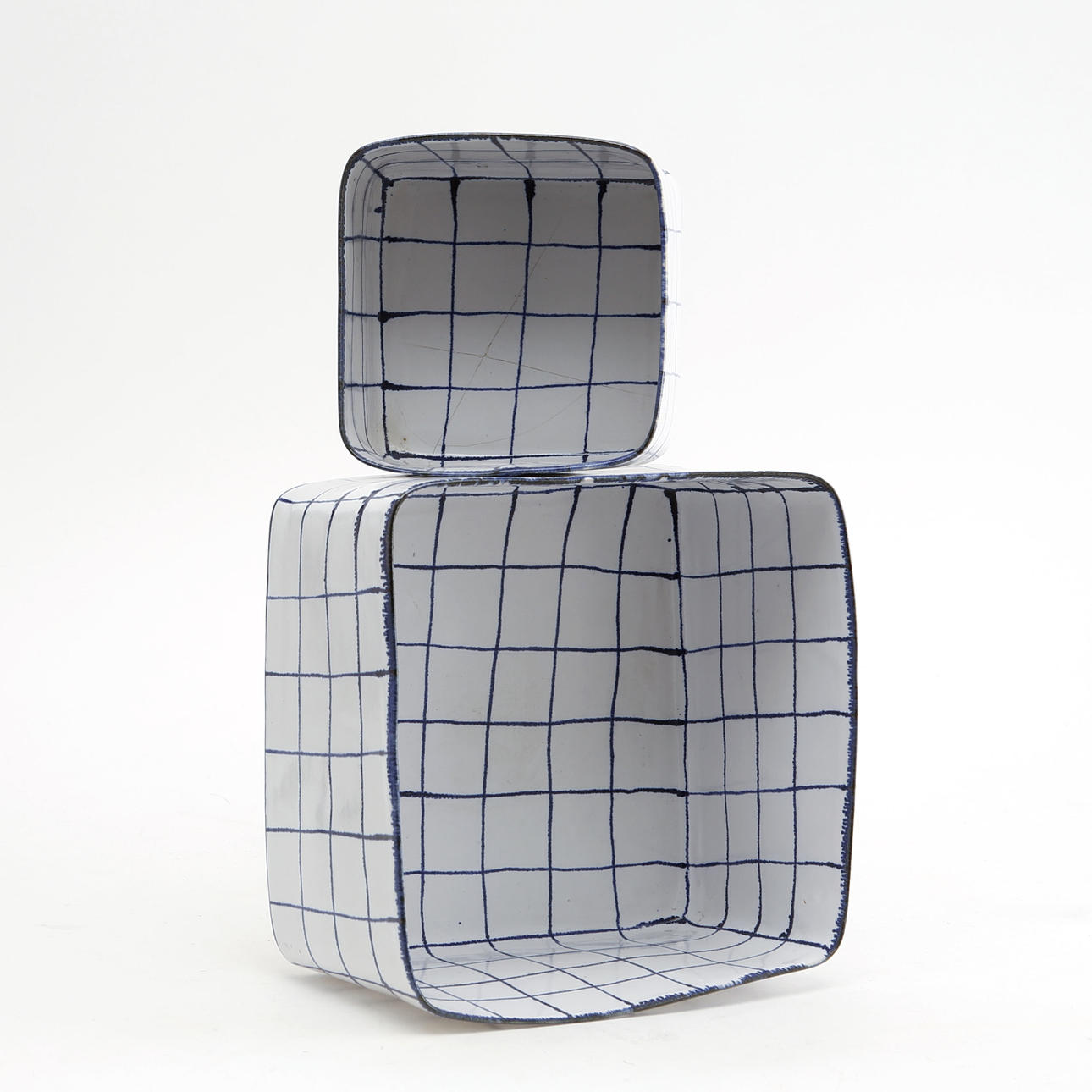 Glazed checkered decor in blue against a white background. 15 x 15, height 9 cm and 23 x 23, height 14 cm.