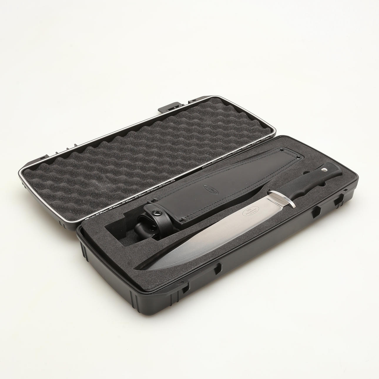 Kiv model Modern Bowie Premium in waterproof transport box with diamond edge, Fällkniven. Full plier blade in laminated steel and handle in Thermorun with exposed plier.