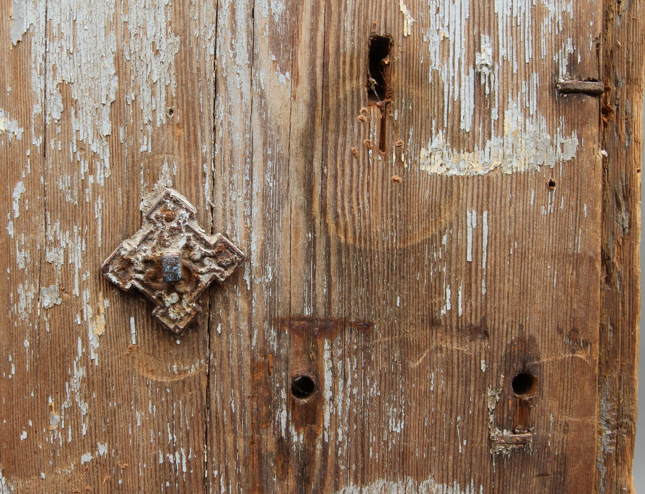 Wear, damage, later painting, locks missing.