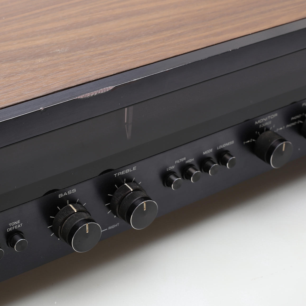 Rotel RX-802 receiver, with year of manufacture 1976-81. Black front panel, chassis in walnut veneer.