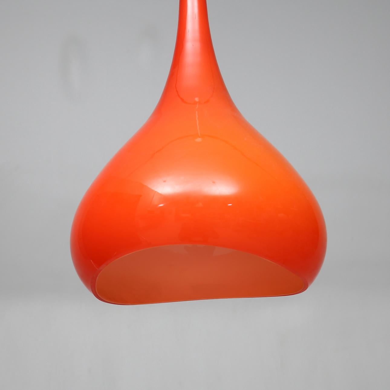 Orange glass. Diameter about 21 cm. Height about 31 cm.
