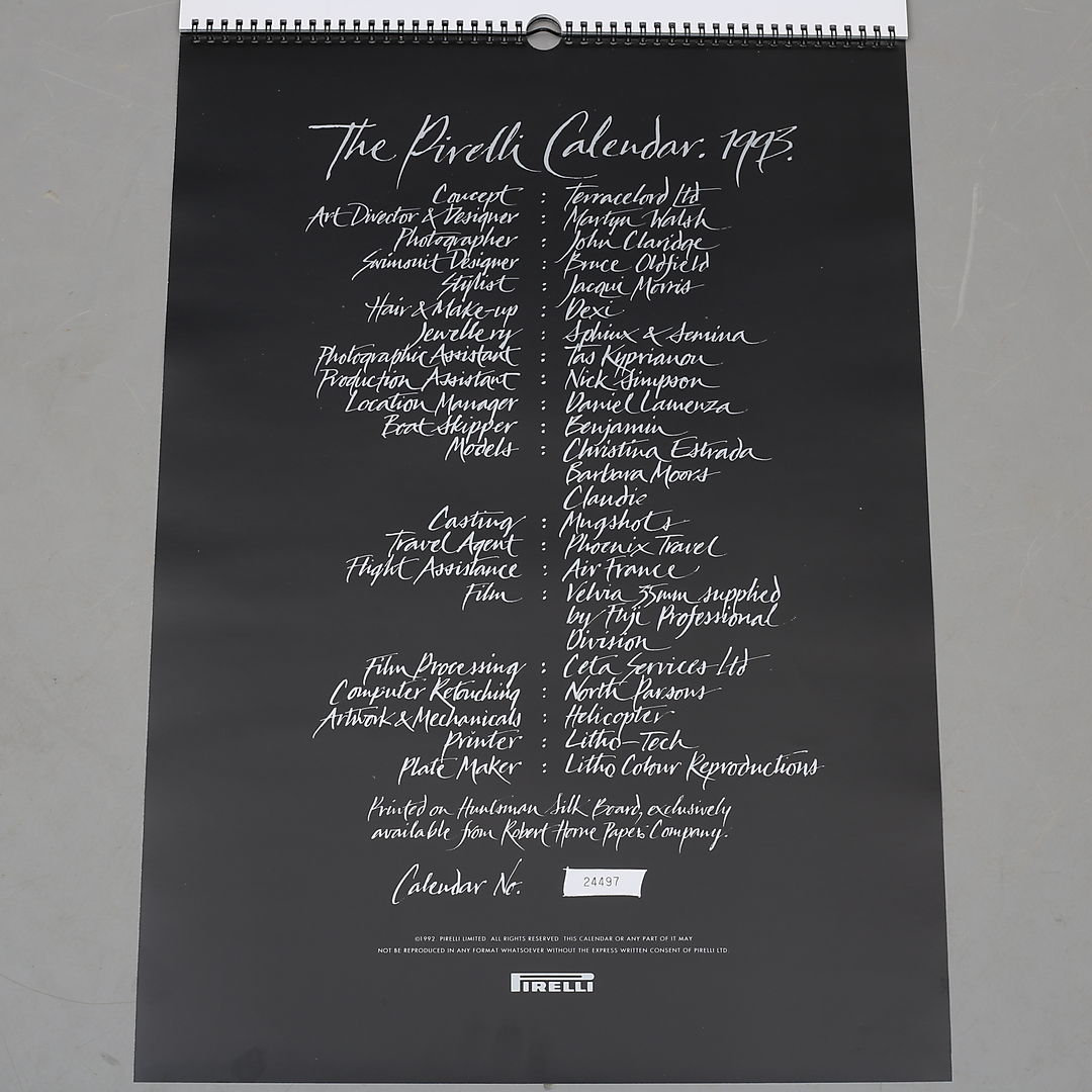 967587. PIRELLI CALENDARS 1993.