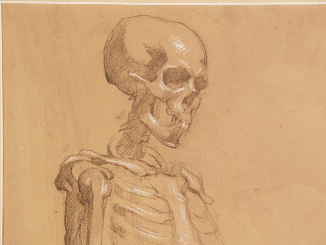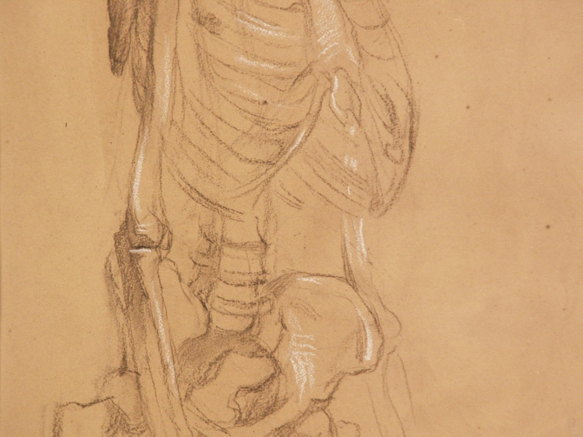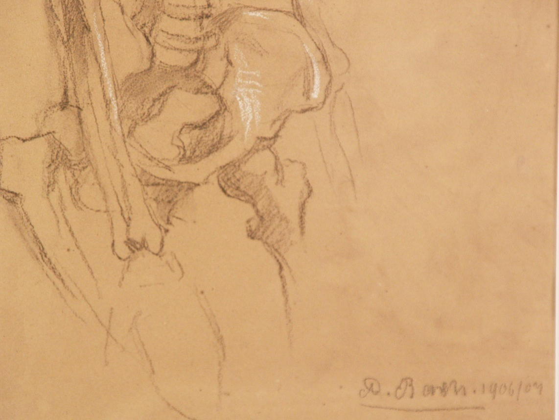 ANDREAS BACH. "Memento Mori - Skeleton Study", 1906/07, black charcoal.