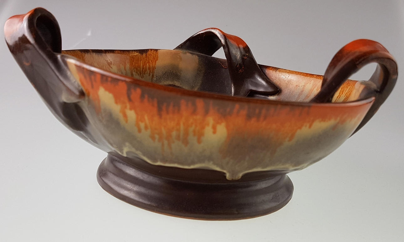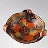 Ceramic vase - Georgenthal, Trier, with three handles, colorfully painted, H. without handle approx. 7.5 cm, D. approx. 18 cm.