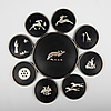 COASTERS, 9 pieces, bakelite with silver decoration, Perstorp.