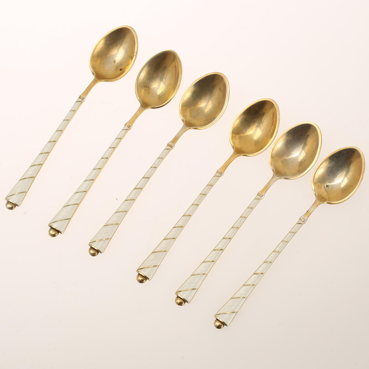 6 pieces Egon Lauridsen Denmark. 8 pieces, enamel, Norway. Length approx. 9.5 and 9 cm. Weight approx. 150 grams. Case is included.
