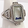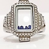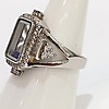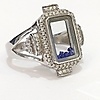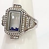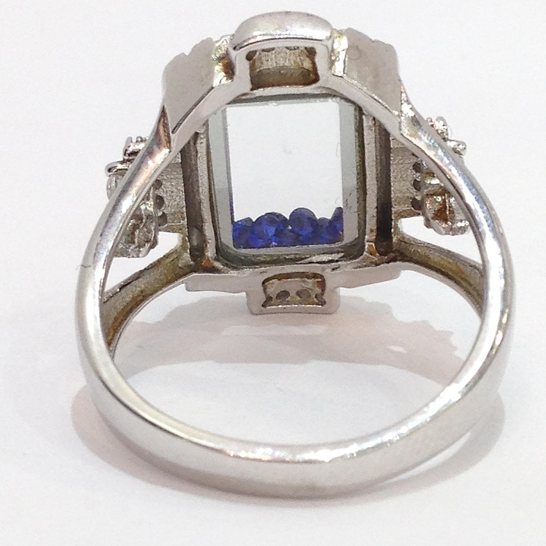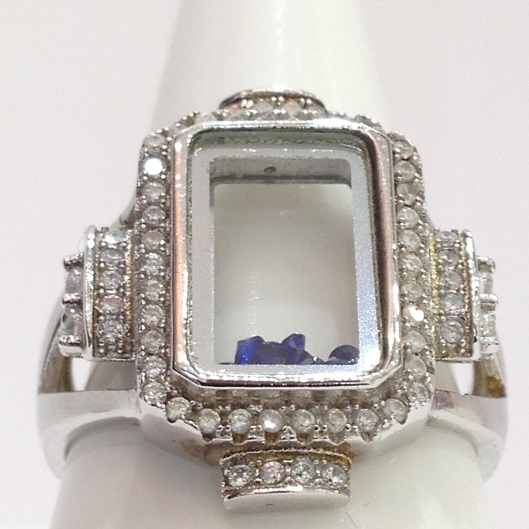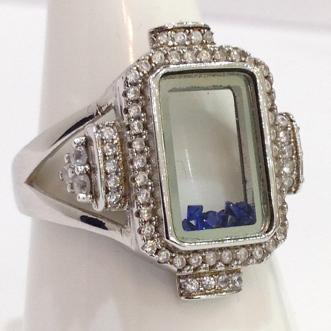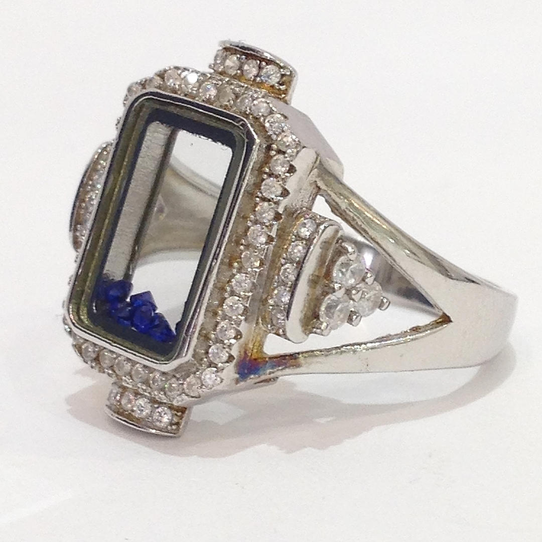 A glass panel silver ring with blue stones
