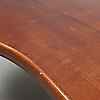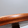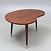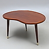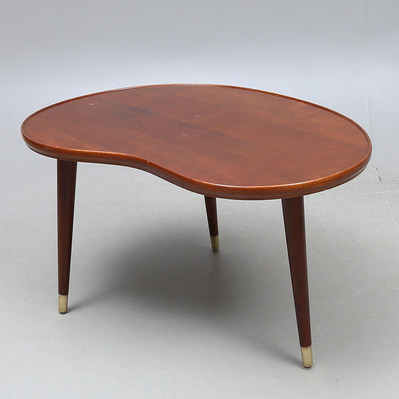 Mahogany. Brass cushion legs. Length 92.5, width 69, height 54.5 cm.