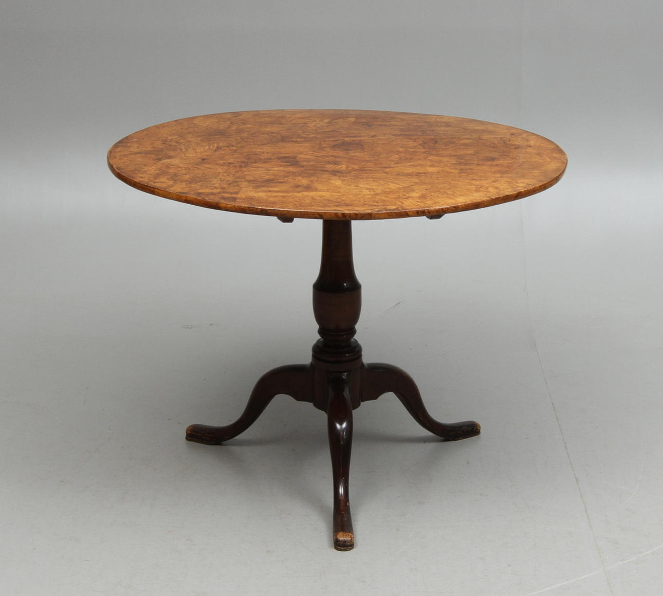 FOLDING TABLE, with top in root veneer, 19th century.